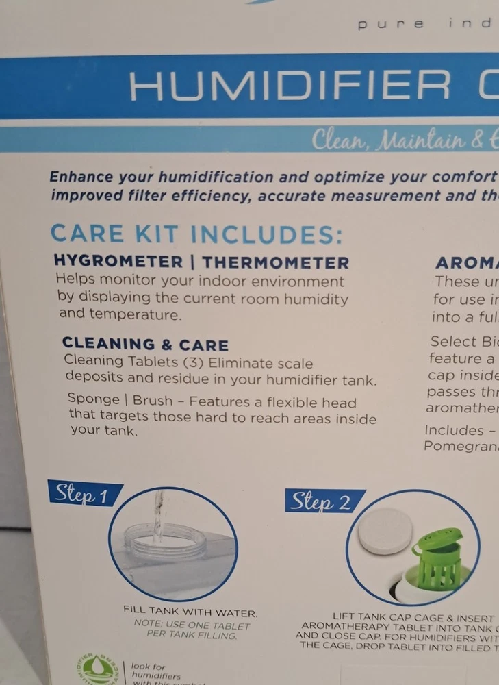 Aromatherapy Cleaning Tablet Brush Bionaire Humidifier Care Kit Hygrometer I opened Box to photograph only Box has some wear Please view all photos zooming in on them as they are part of the description for you to judge condition