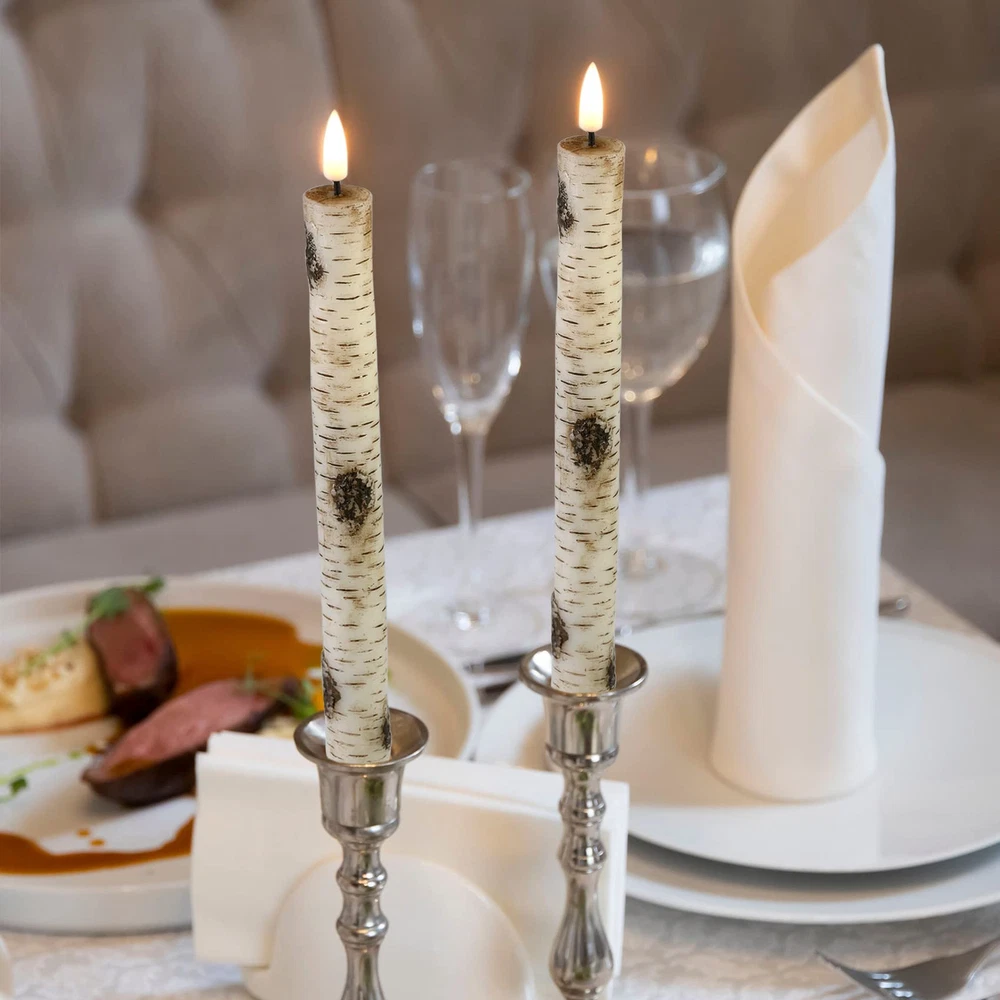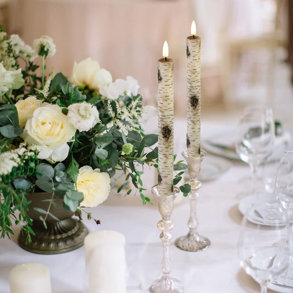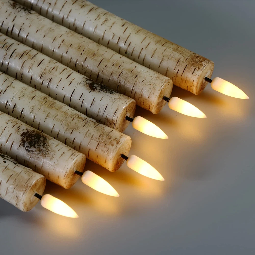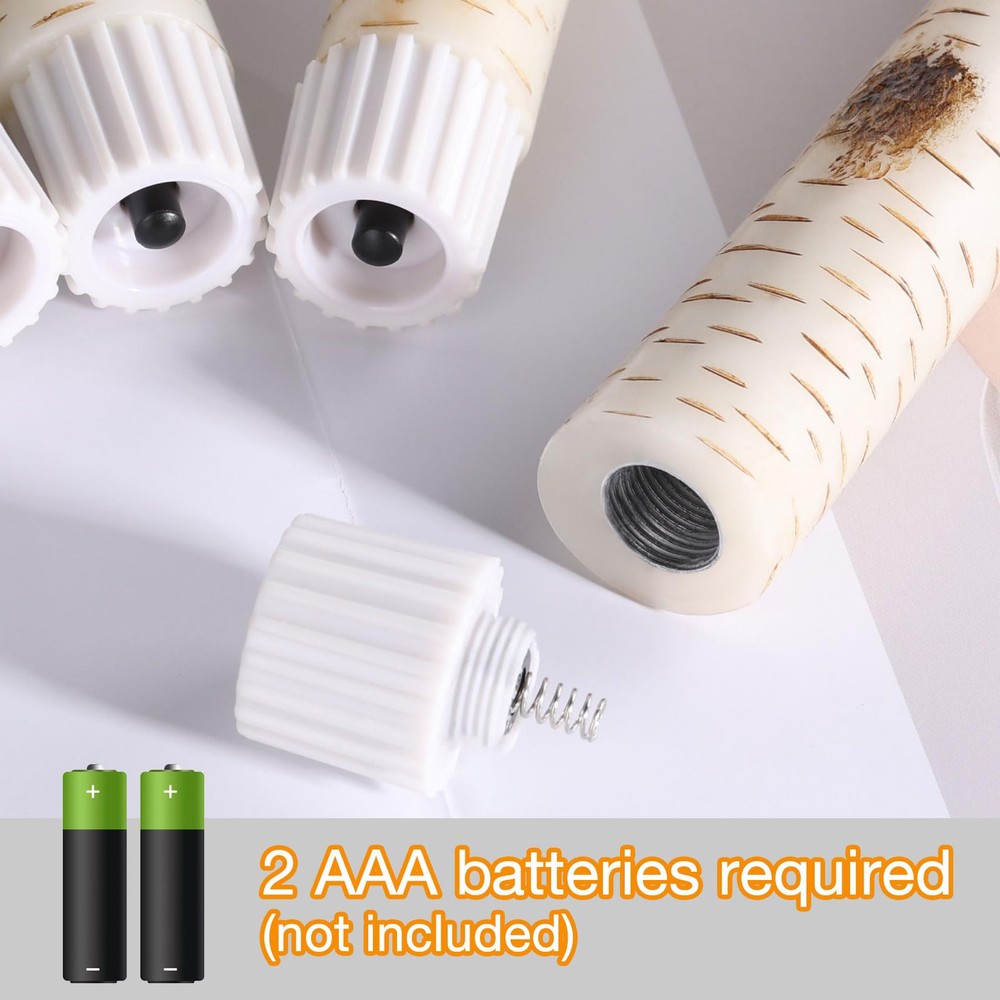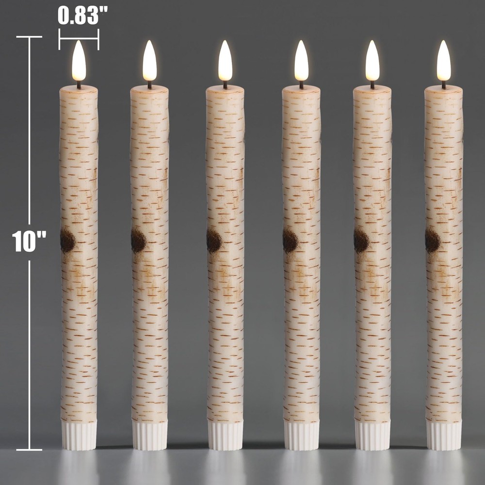 Realistic Flameless Candles - Coated paraffin wax and simulated black wick flame, these white taper candles give off warm white glow, easy to create a soothing ambiance and too realistic to fool your eyes especially lit. Battery Powered Candlesticks - Each candle is operated by 2 AAA battteries( not included), which lasts over 200 hours, long battery life. Remote control is operated by 1 cr2025 coin cell ( included). Safe Comes First - These battery taper candles are smokeless, flameless, dripless, remote controlled, no fire risk, especially friendly to kids and pets, great alternative to real candles. Remote Controlled & Timer-ready - One remote controller works for all candles, which allows you to control power, set timer, adjust brightness and set flickering or static flame effect within 20 feet. Great Decoration & Gifts Idea - Variety of colors and designs to choose from, easy to fit for any occasions and match your decor, great decoration for wedding, party, seasonal holiday festival, like Halloween, Christmas, home and also wonderful gifts.