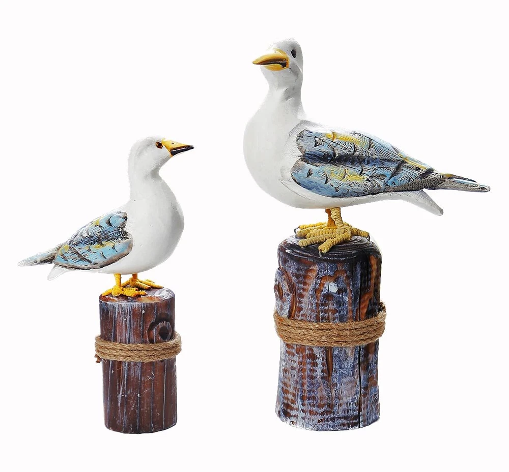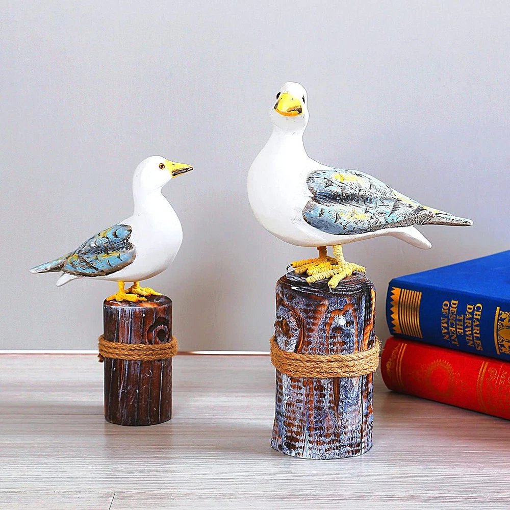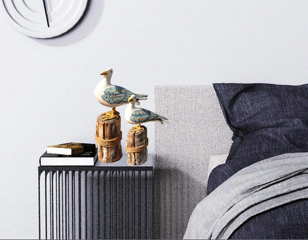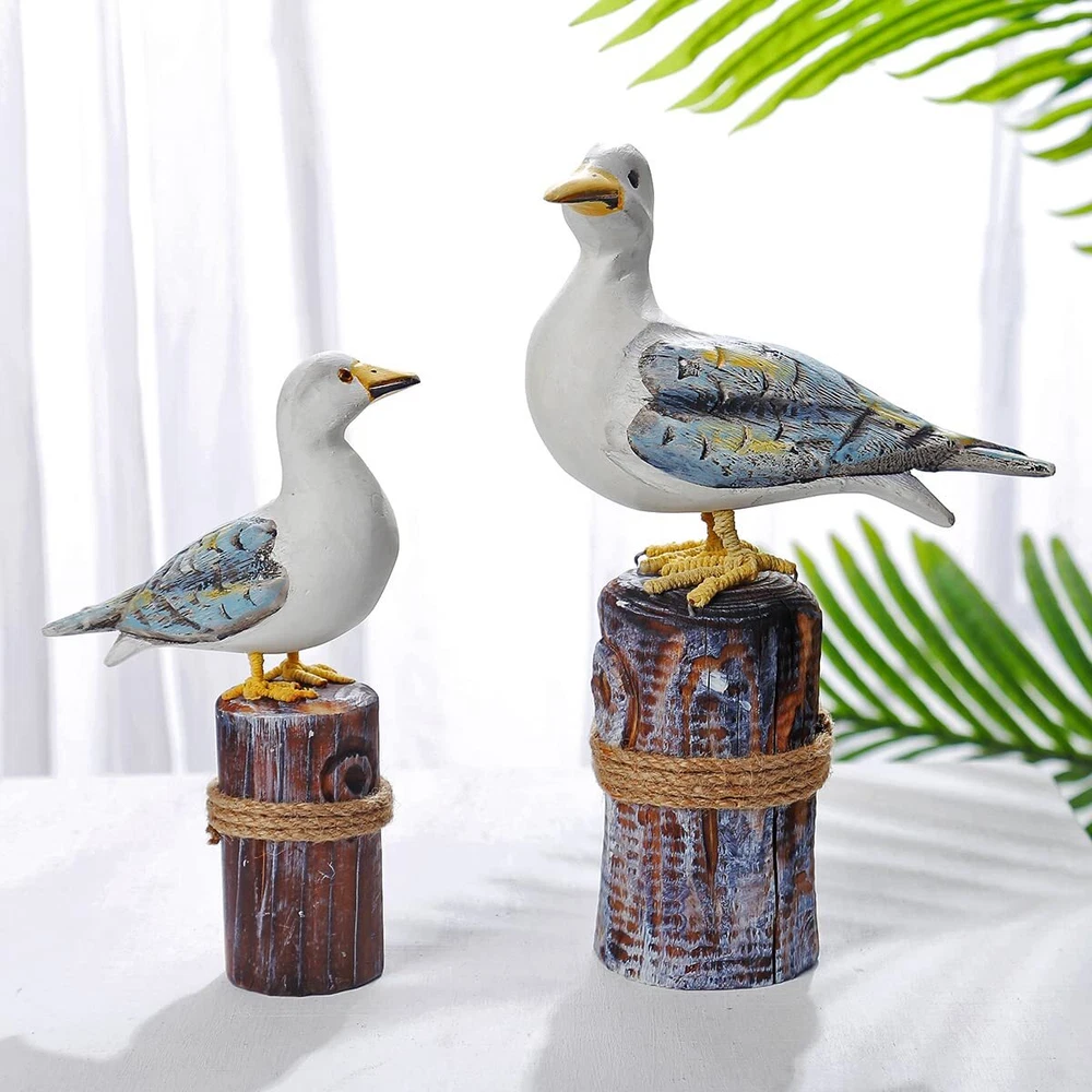 "Bird Beach Decor Statue 1.How many seabirds are there in it? This home decoration includes a pair of seabirds, one large and one small, to create a more complete look and add fun and liveliness to your living space. 2.What style does it match? Although inspired by marine birds, it can actually match any style. We put it in traditional style, modern style, coastal style, and Mediterranean style, and it can be well matched. 3.Is it suitable as a gift? Of course, it is. Each one is handmade, giving each product its own personality. With high-quality wood and superb carving and painting skills, this product looks very upscale. Putting it at home can make us feel relaxed, and who can resist such cute seabirds? 4.How big are the two birds? The bigger one is 11.6x7x3 inches, and the smaller one is 8.6x5.3x2.5 inches. 5.What materials is it made of? Most of it is made of wood, and only the legs are made of iron and brown rope, which looks very vivid." 【Coastal Beach Decor gift】-This home decoration uses a coastal beach style to fill your home or hotel with oceanic vibes, creating a comfortable and relaxing atmosphere. 【Nautical Birds Statue】-This pair of seabirds is hand-carved and hand-painted by well-known local craftsmen, making them incredibly vivid and rich in detail, showcasing the charm of handicrafts. 【Wood Art Gift】This home decoration is crafted from high-quality wood, painted with eco-friendly paint, and paired with brown rope and iron, ensuring a safe and eco-friendly usage.Its a perfect gift for everyone, especially for those who love the ocean, sailors, navy officers, fishermen, residents living by the sea, marine workers etc. 【Size of Home Ornament】This home decoration includes a pair of seabirds, one large and one small, to create a more complete look and add fun and liveliness to your living space.The bigger one is 11.6x7x3inches ,The smaller one is 8.6x5.3x2.5inches. 【Customer Service】If you have any questions during the purchase or use of our product, please feel free to contact us at any time. Our online customer service team will provide you with fast and professional assistance.