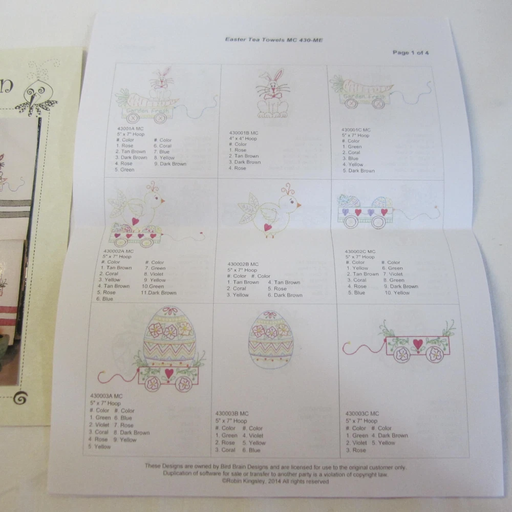 Bird Brain Designs Easter Tea Towels machine embroidery CD by Robin Kingsley