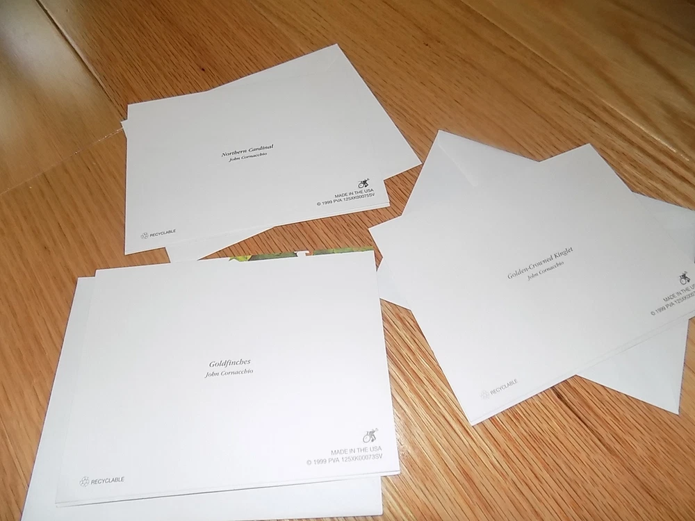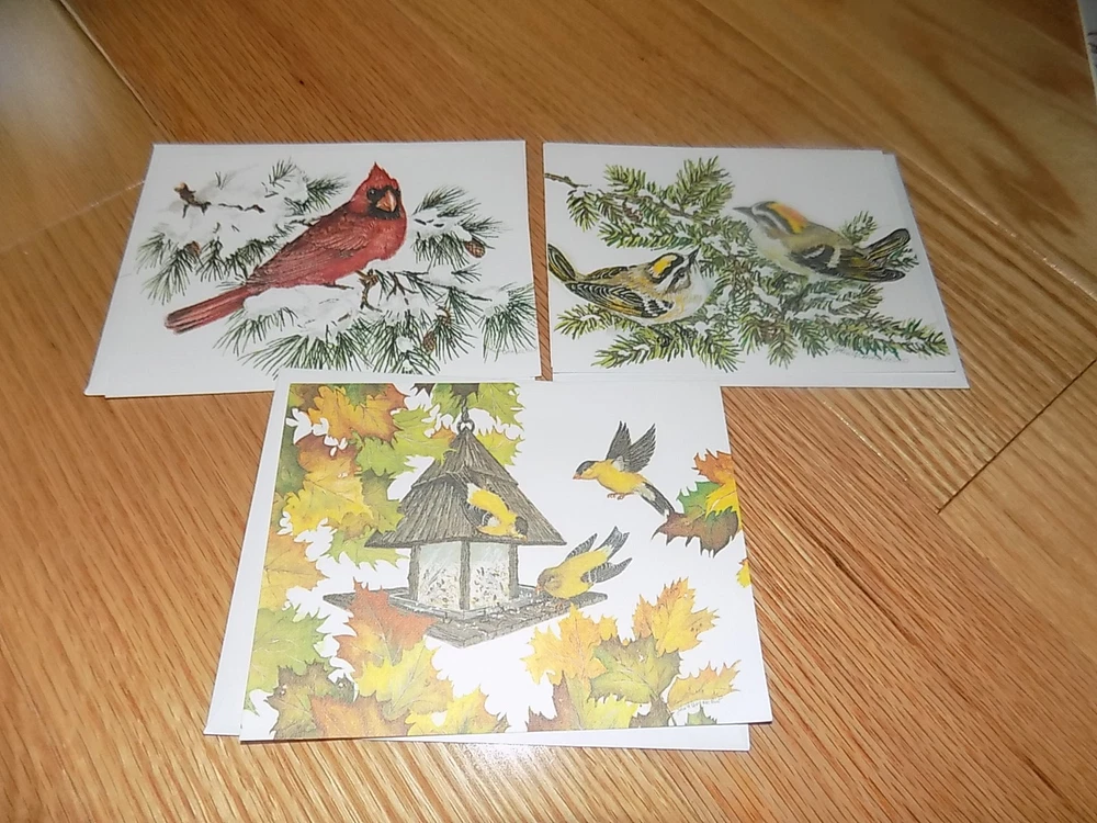 You are bidding on a set of three (3) Blank Note Cards:Golden-Crowned Kinglet, Northern Cardinal, Goldfinches with envelopes. They are unused. Light wear to them. Look at photos and ask questions lot being sold as is. If you have ANY QUESTIONS related to this auction, please contact me BEFORE you place a bid. Thanks for looking and be sure to check out my other listings!!! PAYMENT · Payment is due within 3 days of the auction's end. · I accept pay pal only! · If your payment is not received within 3 days it will automatically be closed out through Ebay’s automated system which may result in a non-payment strike against the buyer. If your feedback score is "0" to "10" : · You must contact me prior to bidding. If you do not contact me prior to bidding I reserve the right to remove your bid. · Zero to ten, feedback bidders. If you bid and win one of my auctions, payment is due immediately at auction close. Any item not paid within 24 hours of the auction close on a "0" to "10" feedback score will be offered to the next highest bidder, NO EXCEPTIONS! SHIPPING/HANDLING: · Items will always be shipped within 3 days of your payment being received. If you pay at auction close, in most cases your item will ship the next day with the exception of holidays and weekends. · I will contact you once I have shipped your order. All books ship media rate, all other items ship parcel post or priority rate depending on the auction listing. · I will provide you with tracking information. · Once your item has shipped and I have provided you the tracking information, I do not send out updates. I always respond to all inquiries so if you have questions after your item has shipped please contact me . · A small handling fee is built into the shipping cost to cover, packaging materials, boxes and gas to the post office. · Media rate and Parcel Post can take between 2-9 days to receive a package. Please rate my shipping speed on the time it takes for me to ship your package, not the time it takes to receive it. I can not control the Post Office delivery time. If you want to pay for priority rate shipping, a faster shipping method, I will accommodate you; just contact me so that I can send you correct pricing information. FEEDBACK · I will gladly leave feedback after feedback has been received. · If there is a problem with your order, please contact me prior to leaving negative feedback and I will try my best to resolve the issue. RETURN POLICY · No Returns accepted. · I list with integrity and have describe each item to the best of my ability, I believe my feedback score reflects that. · Please read the description carefully so that you understand what you are bidding on, and if you have questions please ask prior to bidding. BEST OFFER: REASONABLE offers will be considered on items with a Buy It Now or Best Offer. If you wait for the last hour or a few minutes prior to the end of the auction, I probably won’t be able to respond. If you want the item make your offer early.