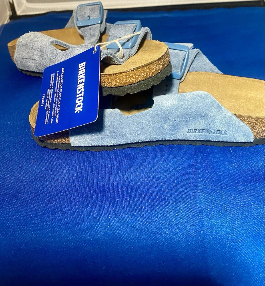 Performance/Activity: Beach, School, Walking Toe Shape: Open Toe Closure: Buckle Handmade: No Country of Origin: Germany Model: Birkenstock Arizona Occasion: Casual Shoe Shaft Style: Low Top Upper Material: Suede Season: Fall, Spring, Summer, Winter Color: Blue Features: Adjustable Strap, Comfort EU Shoe Size: 31 Type: Sandal Style: Slip-On Product Line: Birkenstock Arizona Lining Material: Suede Brand: Birkenstock Pattern: Solid Shoe Width: Narrow Accents: Buckle Heel Height: Flat (Under 1 in) Vintage: No Heel Style: Flat US Shoe Size: 13 Department: Unisex Kids