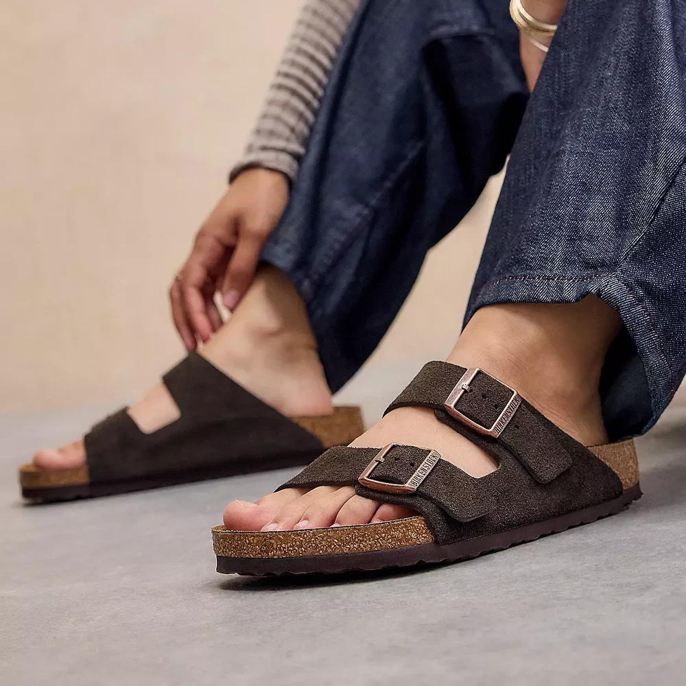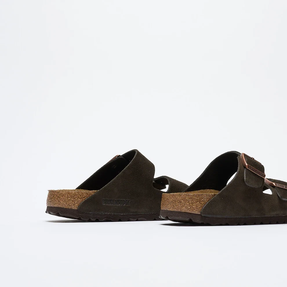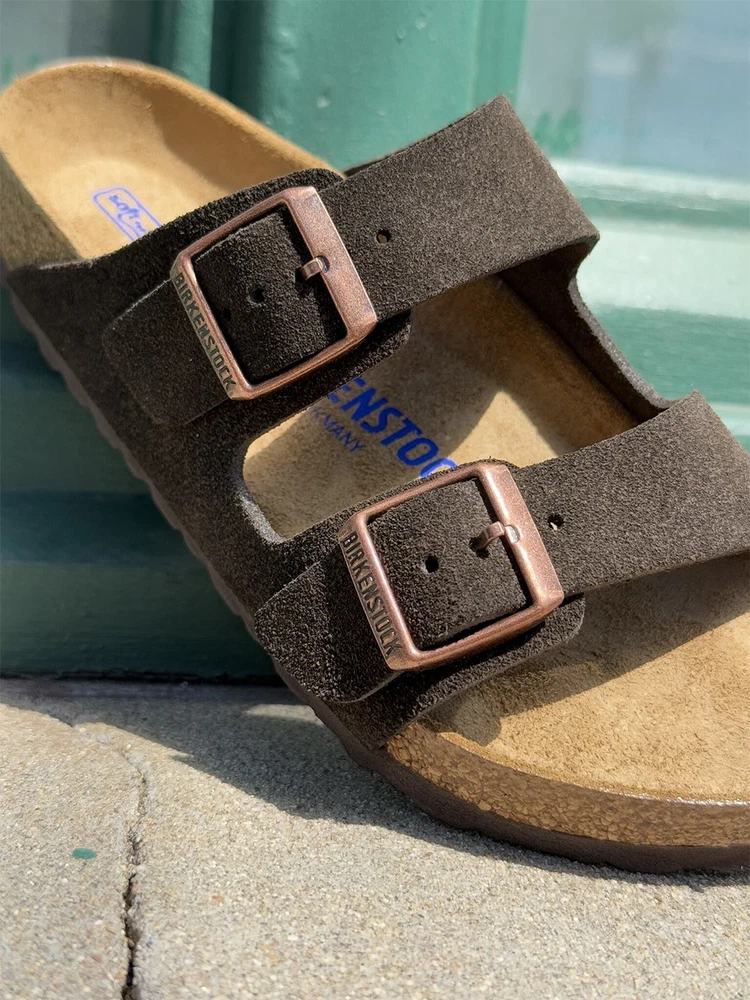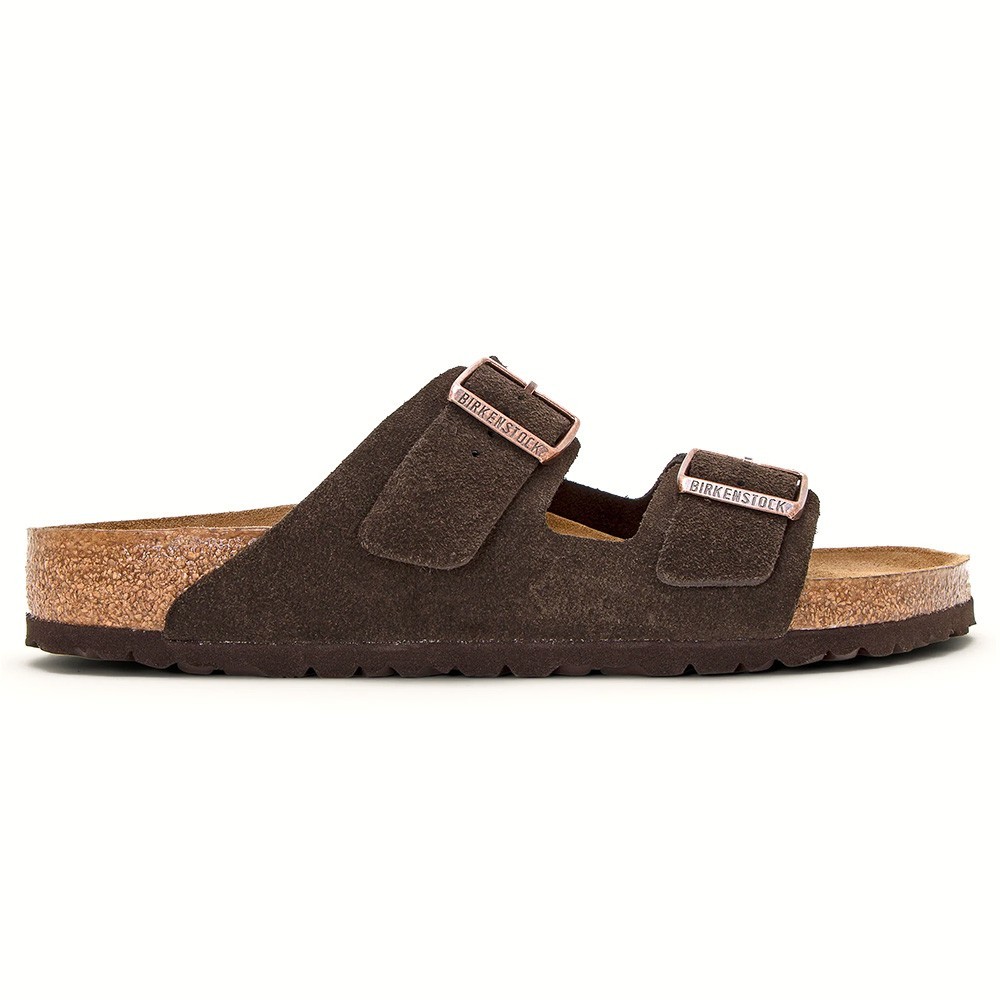 Narrow Birkenstock Arizona Mocha Sandals Size 37-41 Wide Birkenstock Arizona Mocha Sandals Size 41-45 Key Features Cushioned soft footbed creates custom support with wear Classic suede upper Suede footbed lining helps keep you comfortable Flexible EVA sole Two adjustable straps with metal pin buckles Made in Germany If you have any questions, please contact customer service. We will respond with 24 hours. Thank you.
