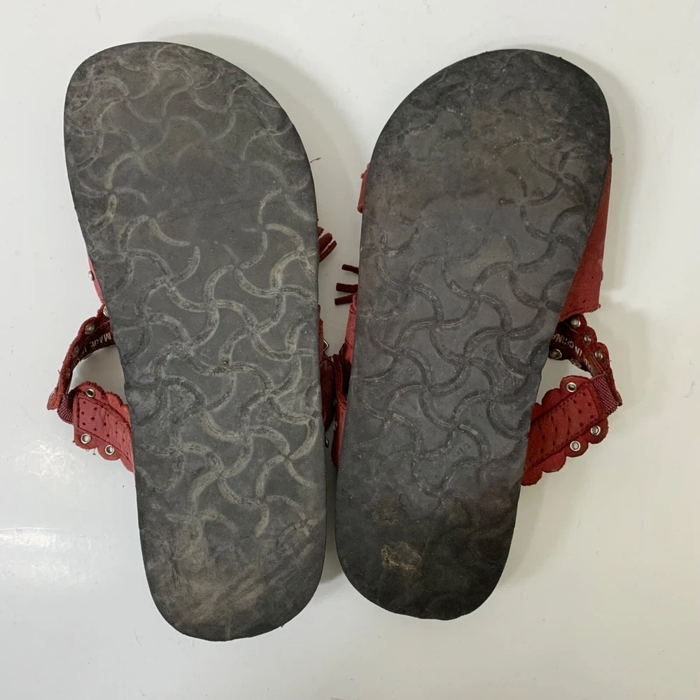 Love these stylish Birkenstock sandals! The maroon color is gorgeous, and the studded details add the perfect touch of bling. They’re super comfortable and in great preowned condition—just a minor strap issue. Perfect for summer outings!