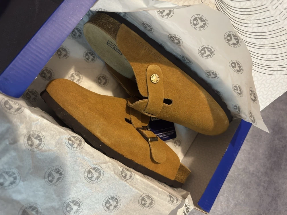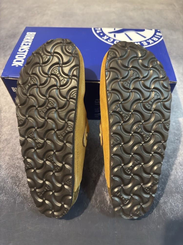 These maroon Birkenstock clogs in UK size 6.5 are perfect for casual occasions during the summer season. The slip-on style with a flat heel and suede upper material offers comfort and practicality. The iconic Birkenstock logo accents add a stylish touch to these sandals, making them a versatile and fashionable choice for women's footwear. Maroon Colour.