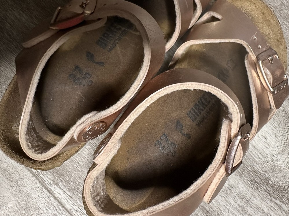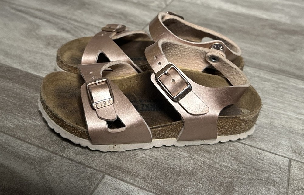Birkenstock Rio Kids Size 27 US 9 Metallic Rose Leather Ankle Strap Sandals