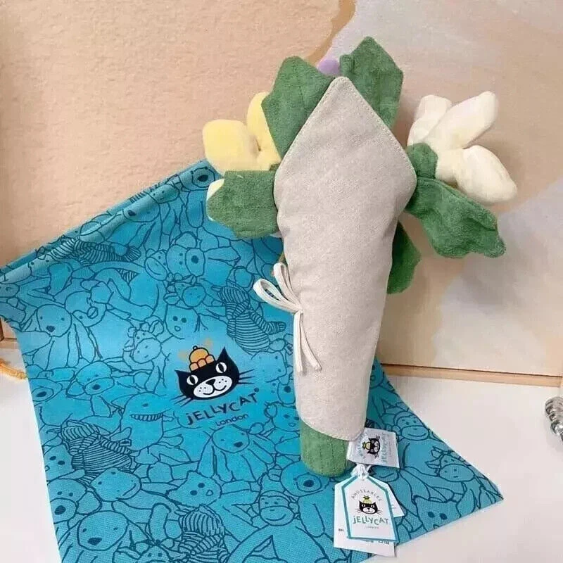 This charming Jellycat doll is the perfect gift for any young girl celebrating a birthday or Christmas. Measuring about 12 inches in height, this adorable toy is expertly crafted in China and features a bouquet of colorful flowers. With its high-quality construction and attention to detail, this doll is sure to bring joy and smiles to any child who receives it. Whether you're a collector of Jellycat stuffed animals or simply looking for a special gift for a child, this doll is sure to delight. Its small size and lightweight design make it easy to carry and play with, while its vibrant colors and intricate details add a touch of magic to any imaginative story. Give the gift of joy and wonder with this beautiful Jellycat doll.