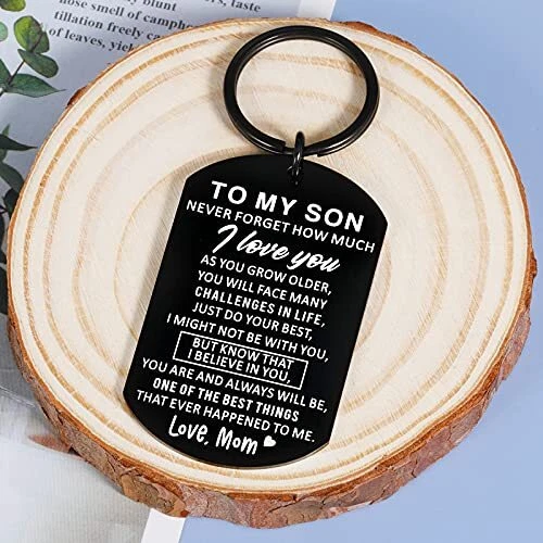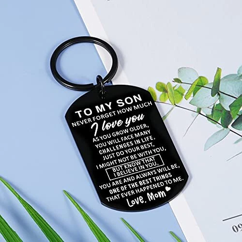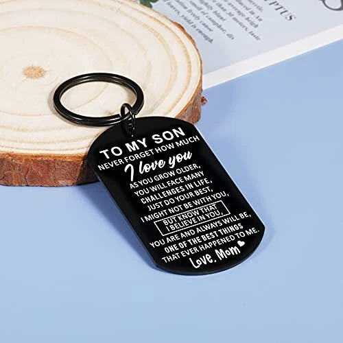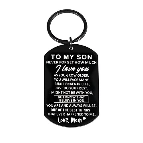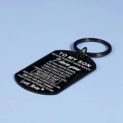 Return Policy Fast Delivery Trusted seller Birthday Christmas Gifts for Son from Mom To My Son Inspirational Keychain Valentine's Day Graduation Anniversary Back To School Gifts for Boys Stepson Son in Law Him Men Stocking Stuffer Product Description Sentimental Words for Your Son: To my son, never forget how much I love you. As you grow older, you will face many challenges in life, just do your best, I might not be with you, but know that I believe in you, you are and always will be, one of the best things that ever happened to me. Love, Mom. Son Gifts from Mom: Perfect to son for Birthday, graduation, thanksgiving day, Christmas, Valentine’s day, a wedding engagement gift from mom. Also make special Coming-of-Age, Back-to-School, Stocking Stuffers, Deployments, Military, Wedding, Father's Day for teen son, stepson, godson, foster son. Inspirational Gift for Him: Great Inspirational gifts for your son when they graduate from high school and go away to college, wonderful high school college graduation gifts for a son who will be a lawyer, police, doctor. Best son graduation gifts from mom. He will cherish it for his entire life! After-Sales: We are obsessed with excellence, attention to detail. If anything goes wrong with your order, please let us know and we will try our best to solve it for you. High Quality and Elegant Package: Thick and sturdy, nice weight in hand. Engraving is deep and clear. The little connecting ring is soldered and come in a beautiful gift box. Shipping Returns Payment Shipping Shipping is FREE to all addresses other than APO/PO boxes in the lower 48 states. All our stock ships from US-based warehouses. Shipped via USPS or UPS (depending on location and package weight) Unless stated otherwise, all orders will ship within 24-72 hours of your payment being processed. Check our feedback to see the great reviews of FAST shipping we offer. Returns Seller does not accept returns Payment We currently accept payment via eBay managed payments only. Once payment is cleared, we will dispatch your shipment within 1-3 business days. Please refer to the "Shipping" tab for more information regarding shipping speed to your destination.