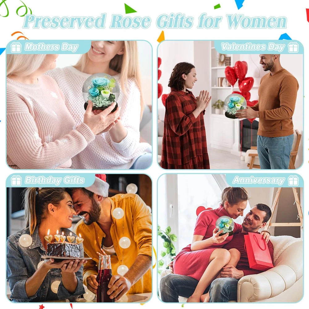 “Sweet” Gifts to Send Your Loved --- Handcrafted with 100% natural flowers, we carefully choose the finest and most vibrant roses from our garden. Using advanced preservation techniques, these roses retain their beauty and freshness indefinitely, symbolizing everlasting elegance and love. Flowers for Delivery Prime --- LED light strands entwine around the petals, powered by three AAA batteries (not included). As evening descends, the LED lights cast a gentle, warm glow, enhancing the enchanting beauty of the preserved flowers and adding a cozy ambiance to any space. This exquisite piece serves as a charming floral decoration, ideal for creating a romantic atmosphere in any room. Gifts for Her Mom Grandma --- Preserved flowers are best gifts for wife, mom, grandma, daughter, mother, best friend, girlfriend, girl, sister, family, colleague, suitable for Mothers Day, Valentines Day, Christmas, Thanksgiving, anniversary, housewarming, proposal and wedding, special gift for women, convey your love, hope and encouragement. Exquisite Gifts Sets --- Product Size: 5*5 inches, Forever Eternal Rose with Gifts Box Set (You don’t need to buy additional gift packaging). Warm Tips --- Eternal Flower Glass Dome was securely encased in foam with in the box, which greatly reduces the possibility of the product being damaged in shipping. Please contact us if you have any inquiry or issue.