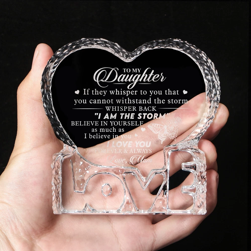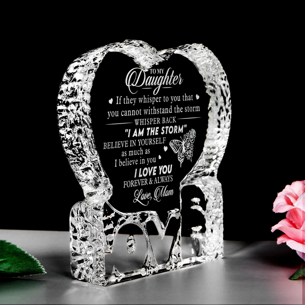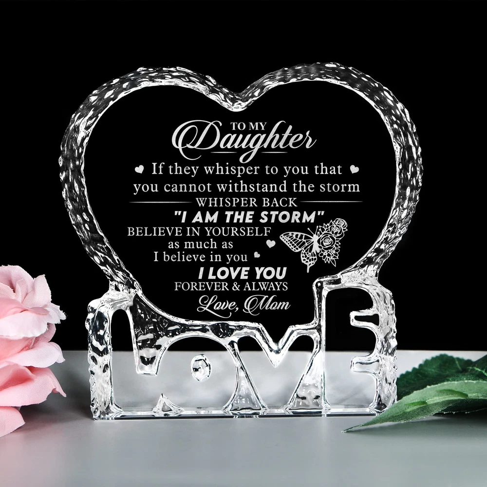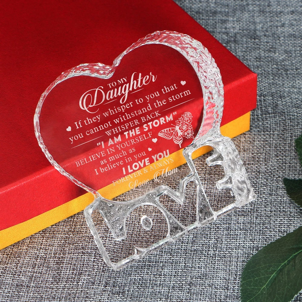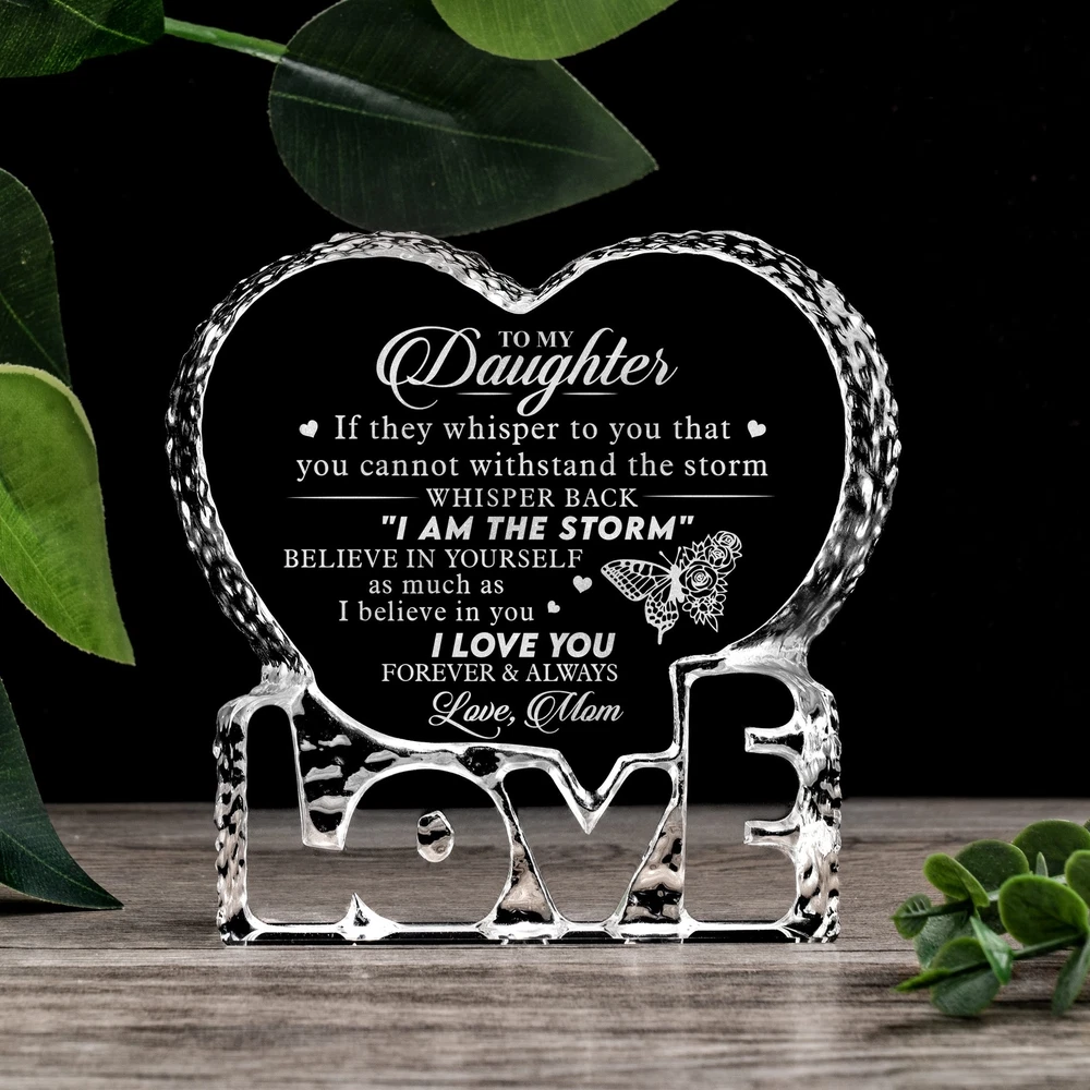 Birthday Gift For Daughter From Mom, Engraved Heart Crystal Home Décor Plaq