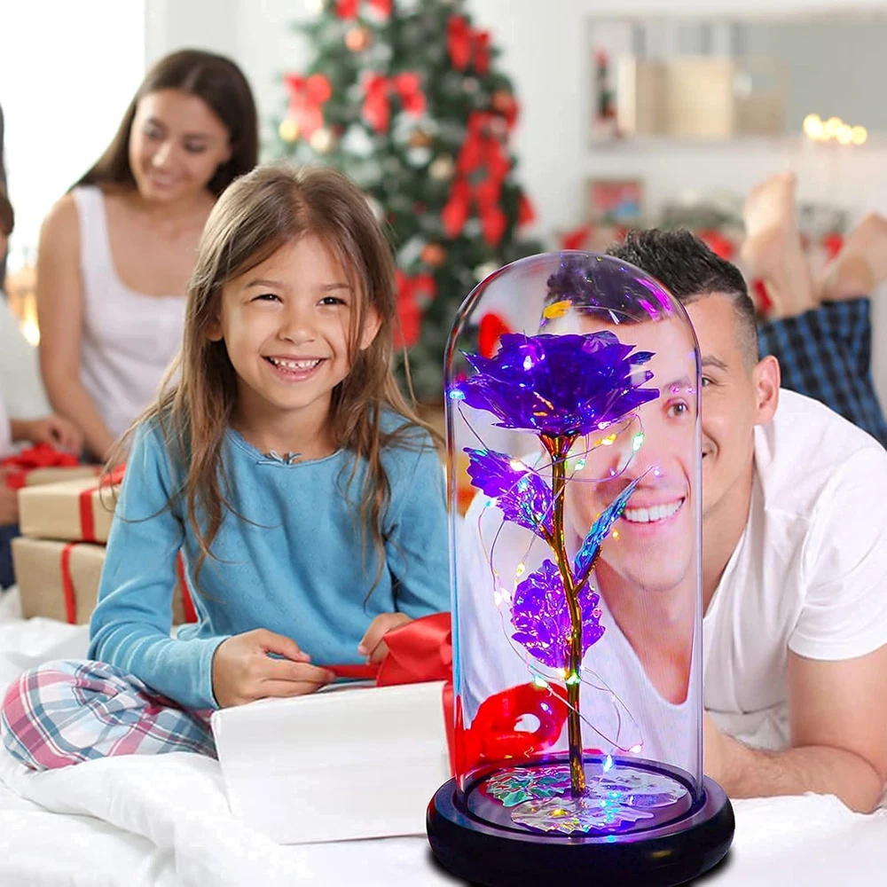 Store New Arrivals Add to Favorite View Feedback Contact Fast deliveries to the customer's home Quality customer service John Make the customers happy! Birthday Gift for Women,Rose Flower Gifts for Her,Artificial Flower Lasts in a Glass Dome, Unique Gifts Is for Mothers Day,Christmas,Anniversary,Valentine'S Day (Purple) Description Valentine's Day Gift for Her: rose that never fade represent eternal love. The rose that bloom forever are blooming in the crystal clear glass cover. The beauty does not pass away with time, which means that the love for you will not change. Simplicity is another way of expressing love. As a symbol of love, roses are an easy and romantic gift for wives and lovers Mothers day gifts for mom: Great Mother's Day gift for mom,grandma,wife. Glass flower rose are a romantic gift for her on Valentine's Day, Mother's Day, Birthday and Christmas, and ideal as Christmas gifts and Christmas decorations Birthday gift for women; Our glass dome is made of high borosilicate glass, crystal clear, hard texture, 360° to fully appreciate the beauty of the eternal rose. Colorful roses are blooming in your crystal glass cover, guarding the galaxy flower rose, just like you guarding love. The glass lid and bottom are easy to clean Anniversary gifts:The small LED lights are embedded on the rose, turn on the switch at the bottom, and the colorful lights illuminate the whole glass cover, which can be used to decorate the room or create a romantic atmosphere during the day and night, or provide a night light for your children in the bedroom. Beautiful and practical coexist Christmas gift for women: The rose comes with a pink packaging gift box, which can be given directly as a gift without spending time on packaging. rose christmas gifts for women, moms, girlfriends. Romantic rose gift ideas, a romantic christmas gift for her Product Description Colorful Rose The galaxy flower rose in the beauty and the beast of the glass dome, to admire the beauty of the galaxy flower rose from different angles. The petals are embedded with tiny LED lights, just turn on the base switch, and the warm colorful lights illuminate the entire dome, which can be used in the living room and bedroom decoration during the day and night. It can also create a romantic atmosphere. -Newest colorful flowers, Colorful Led Strip Lights -The best choice-for witness eternal love. -With a glass dome to cover, in that it can be lasted for a long time, Easy to clean. -With beautiful gift box, best gift for her, Valentine's Day to show your love! Mother Day Christma's Day Valentine's Day The glass cover symbolizes the protection of love, and the galaxy flower rose symbolizes that love never fades. Simplicity is another way of expressing love. Give your wife, girlfriend, and mother a simple, romantic gift. Item model number Valentine Day Base Diameter 4.5 Inches Number of Items 1 Country of Origin China Warranty Type No Warranty Container Material Glass Indoor/Outdoor Usage Indoor Unit Count 1 Count Batteries required No Material glass Package Information Box Container Shape Rectangular Item Package Quantity 1 Plant or Animal Product Type Rose Item Weight 7.7 ounces Seasons All Occasion Mother's Day, Christmas, Birthday, Valentine's Day Special Feature LED Strip Light, Glass Dome Color Purple Specific Uses For Product Home Decor Recommended Uses For Product Home Decor, Romantic Settings, Night Light Included Components 1x Round bottom, 1x LED light stripe, 1x Glass dome, 1x Protective box and sponge, 1x Pink gift box Product Dimensions 4"D x 4"W x 8"H ABOUT US We offer the best prices around on high quality products. Our E-store includes media such as books, movies, music and games while offering electronics, toys, sporting apparel, clothing, tools, general home, garden items and more. SHIPPING We are always working hard to ensure your package arrives as soon as possible. Please understand that some factors like weather, high postal traffic, and the performance of shipping companies are outside of our control. We offer free shipping to the lower 48 states and ship within 2 business days of payment, usually sooner. We do not accept P.O. Boxes. Please provide a physical address. For shipping outside of the continental USA, we only use eBay's Global Shipping Program. The item is shipped to KY and then sent to the rest of the world. International customers are responsible for all duties and taxes. Continue to 'check out' to calculate costs for shipping the item to your country. Messages regarding eBay's Global Shipping Program MUST be directed at eBay EXCLUSIVELY. RETURNS We offer a 30-Day Return Policy on items in which you are not completely satisfied with. You have the option of a full-refund or an exchange of the item. No returns are available on items shipped outside of the USA PAYMENT We accept PayPal. CONTACT US This page content is yet to come Please ad us to your favorite seller and visit again later Thank You CUSTOMER SATISFACTION We try our very best to make sure every customer is completely satisfied. If there's a problem, message us! We're happy to help. WE ACCEPT