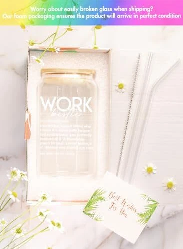 Return Policy Fast Delivery Trusted seller Birthday Gifts For Coworker Women – Work Bestie Gifts For Women Friends - Appreciation Gifts For Coworkers, Unique Present Ideas For Coworker Leaving, Farewell Party – 16 Oz Coffee Glass Product Description COWORKER GIFTS FOR WOMEN - Give your workmates a little self-confidence boost with this coffee glass. They will absolutely love this cute gift. A GIFT FOR ANY OCCASION - With its own gift-ready packaging, this printed coffee-beer glass can also be given as a gift on special occasions like anniversaries, holidays, birthdays, Christmas, or Thanksgiving! HYDRATE IN STYLE - Measuring 3.6"Wx7.4" H, you or a loved one can use this 16oz glass for any beverage. It’s perfect for ice-cold juices, smoothies, water, or freshly brewed coffee and tea. GOT YOU COVERED - This coffee glass for women has a leak-proof bamboo lid that helps protect against spills whether you’re at home, by the pool, or on the go. It comes with a glass straw, too! COWORKER LEAVING GIFTS FOR WOMEN, BIRTHDAY GIFTS FOR COWORKER WOMEN - Made with food-grade glass material, this glass coffee tumbler is built for daily use. It won't harbor odors or flavors from your drink and can easily be cleaned with soap and water. Shipping Returns Payment Shipping Shipping is FREE to all addresses other than APO/PO boxes in the lower 48 states. All our stock ships from US-based warehouses. Shipped via USPS or UPS (depending on location and package weight) Unless stated otherwise, all orders will ship within 24-72 hours of your payment being processed. Check our feedback to see the great reviews of FAST shipping we offer. Returns Seller does not accept returns Payment We currently accept payment via eBay managed payments only. Once payment is cleared, we will dispatch your shipment within 1-3 business days. Please refer to the "Shipping" tab for more information regarding shipping speed to your destination.