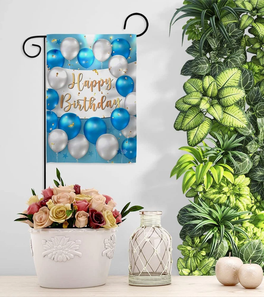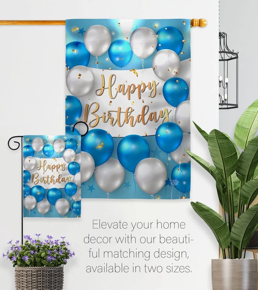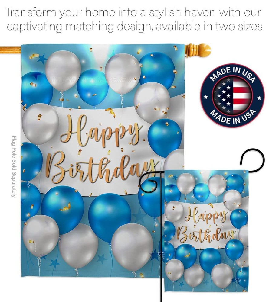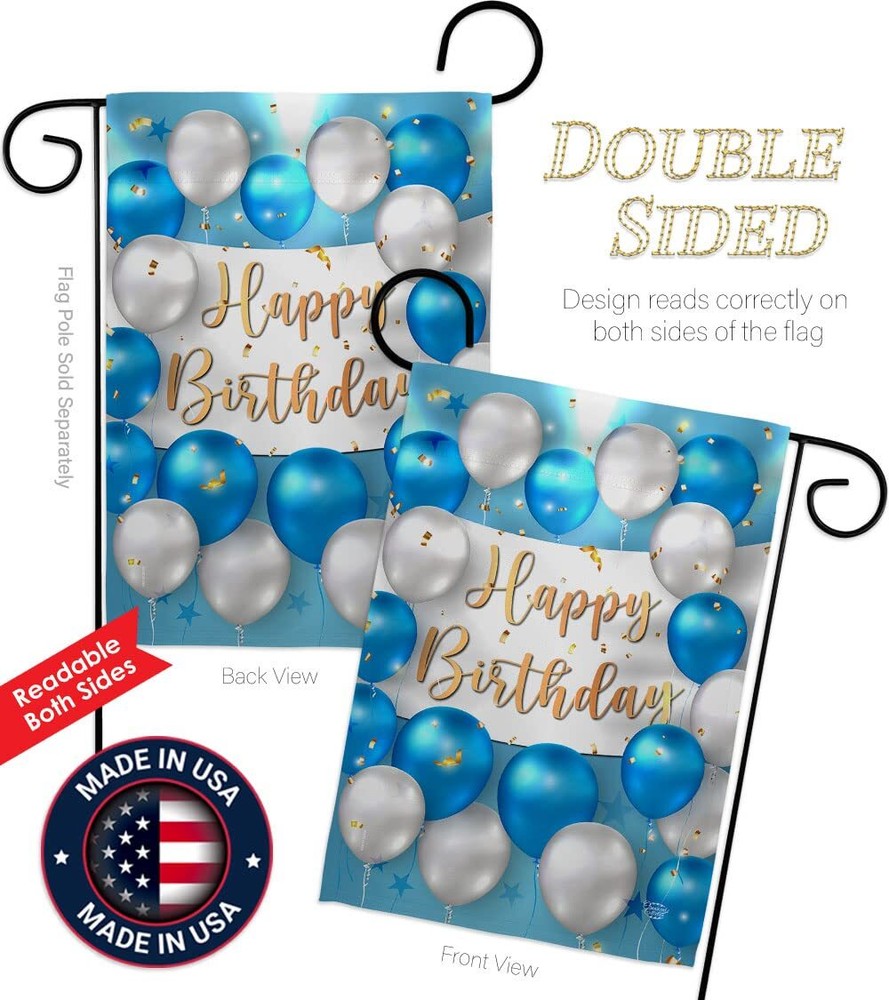 Birthday Party Garden Flag Set with Stand for Outdoor Celebration Cake Display