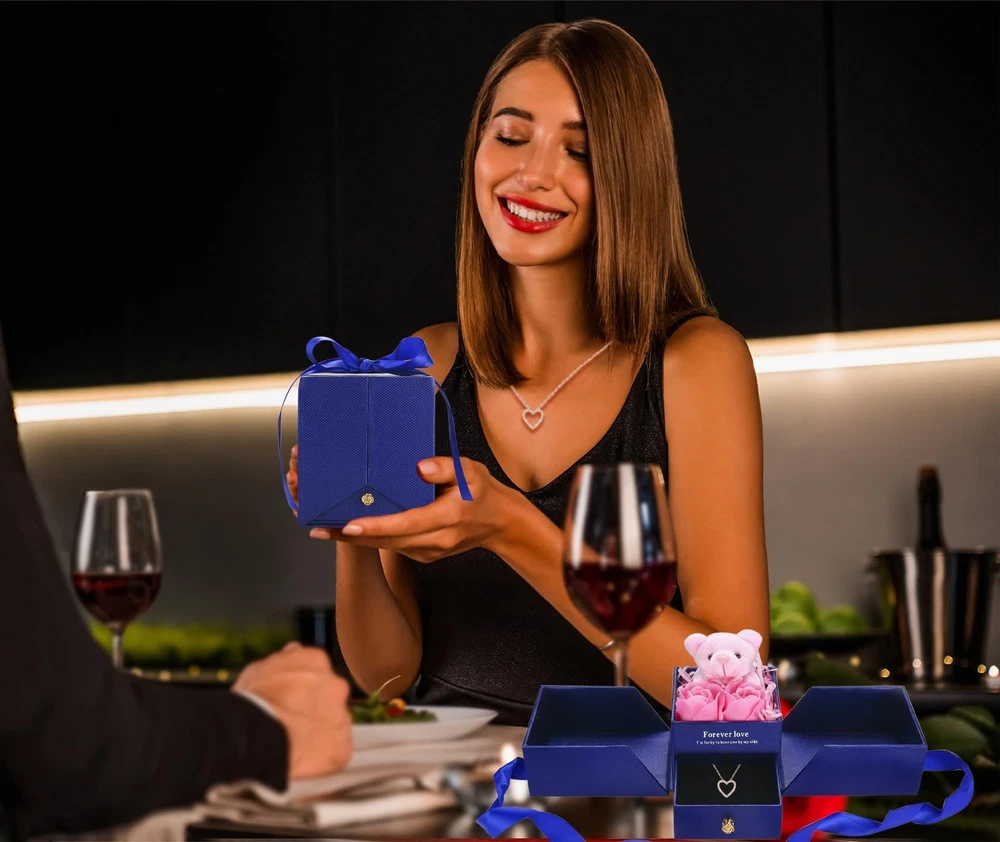Birthday Women Gifts Artificial Rose Flowers Bear Gifts Box with Heart Necklaces for Her Mom Girlfriend Wife on Anniversary Mother's Day Valentine's Day Product Details Color: Rosegold Brand: llyish MPN: ll-gift box UPC: 638457176582 EAN: 0638457176582 Product Dimensions: 3.74 x 3.74 x 4.33 inches Item Weight: 10.6 ounces Manufacturer: llyish Item model number: ll-gift box Fabric Type: 100% Cotton Assembly required: No Batteries required: No 100% Cotton Romantic Gifts for Women: This is a romantic gift for women mothers, girlfriends, wife on birthdays, mothers day, Valentine's Day, anniversaries, who doesn't want to receive a one-of-a-kind gift. Necklace for Women:Preserved rose flowers with a heart necklace, silver-plated, rose gold, 14K, hypoallergenic, lead-free, nickel-free, harmless to health, heart-shaped pendant represents eternal love, simple, elegant, and versatile jewelry is your best choice. Beautiful Gift Box and Cute Bear:We use cute little bears for decoration. The little bears are comfortable to touch, which means meticulous care and protection of your love. Drawer-style jewelry box, which can hold jewelry, lipstick, etc. The eternal flower is matched with the bear to give you gentle waiting. Symbol Of Love: A flower is eternal, only love is eternal, preserved flowers and heart necklaces represent eternal love, double love makes her more at ease, deeper than love is love, and more important than love is you.