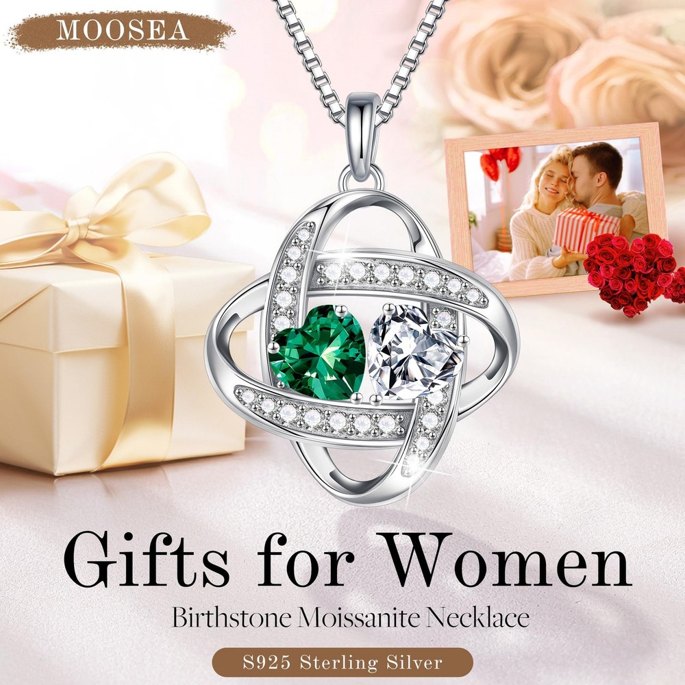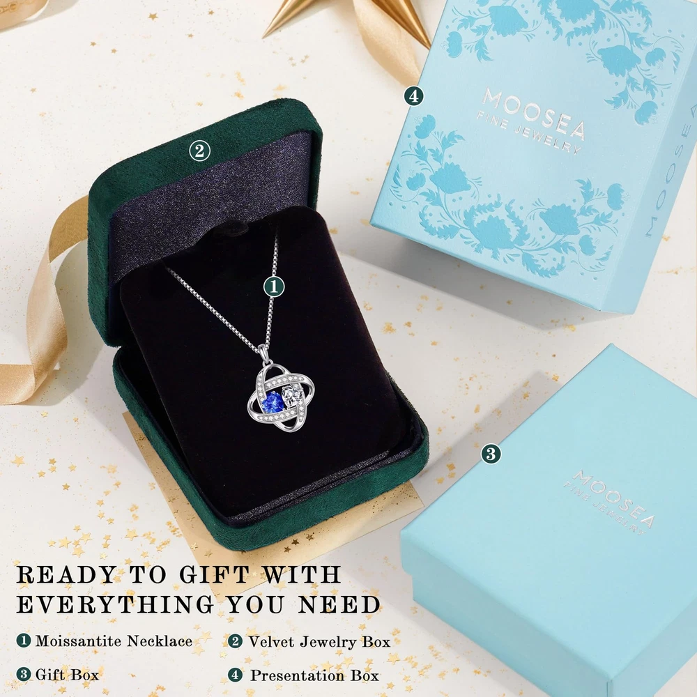 The love knot necklace, symbolizing boundless love and emotion, makes it a perfect choice for mother's day gifts, birthday gift, anniversary jewelry gift or any occasion you want to express affection. Features: Color: silver Size: 19"+2.5" extender Style: 12 color birthstones Material: made of 925 sterling silver with moissanite br> Package: 1* Birthstone Moissanite Necklace 1* Velvet Jewelry Box 1* Presentation Box 1* Gifts Box 1* Silver Polishing Cloth Perfect Gifts for Women ♥Birthday Gift ♥Thanksgiving Day Gift ♥Christmas Gift ♥New Year Gift ♥Wedding Gift ♥Mother's Day Gifts ♥Family Gift ♥Mother Necklace ♥Wife Necklace ♥Promise Necklace ♥Daily-wear Necklace Care Tips for your Moissanite Jewelry: 1. Keep your love knot moissanite Necklace away from harsh chemicals. 2. Keep birthstone moissanite necklace away from showering. 3. Keep sterling silver moissanite necklace clean and dry. 4. Regulary wipe the birthstone necklace with polishing cloth. MOISSANITE & BIRTHSTONE: Unique double heart design, one is a heart-shaped MOISSANITE and the other is a gem-grade heart-shaped BIRTHSTONE. Double heart necklace symbolize love for each other, this necklace will better express your unique love for her 925 STERLING SILVER & SIZE: The birthstone moissanite necklace is crafted with precious S925 sterling silver, lead and nickel free, hypoallergenic, will not make your skin green, red or itchy. 19" + 2.5" extension, the spring clasp is easy to wearing TOP GRADE MOISSANITE: This moissanite necklace with center stone 1.2ct. Each stone has been carefully selected, all of which are D color VVS1 clarity. The stones feature hand made setting instead of wax setting, to ensure our stones are stronger and safer on the setting PERFECT GIFT FOR YOUR LOVED SOMEONE: Birthstone moissanite necklace is beautifully wrapped, with velvet jewelry box, presentation box, gifts box, silver polishing cloth. Expressing your love for your wife, fiancee, mother or families GIFT CHOICE: Love knot necklaces are ideal for any occasion, such as Engagement, Anniversary day or Mother 's Day, Christmas Day, Thanksgiving Day etc. They symbolize the strength of your bond and the joy you bring to each other's lives