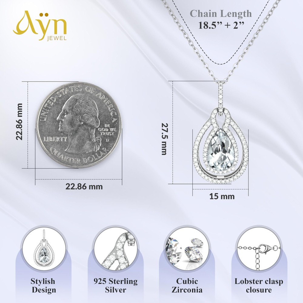 Want to WOW Your Wife, Girlfriend, Friend, Mother, Sister, or Daughter on Her Birthday, a Special Occasion, or an Anniversary? This platinum-plated 925 sterling silver teardrop birthstone pendant necklace is guaranteed to be a meaningful gift with a high sentimental value. How?! ELEGANT DESIGN - This birthstone necklace for women combines stunning craftsmanship with clear, vibrant stones. Its classy design effortlessly enhances any outfit, from casual to formal, making it perfect for various occasions. PERFECT GIFT - Packaged in an elegant gift box and pouch, this silver necklace is ideal for birthdays, anniversaries, and holidays. Its personalized birthstone adds sentimental value, making it a heartfelt gift for any woman. VERSATILE STYLE - Crafted with tarnish-free gold and sterling silver, this gemstone necklace complements both everyday wear and special occasions. It's a versatile addition to any woman's jewelry collection. DURABLE QUALITY - Made with high-quality materials like platinum plating and a sturdy chain, this necklace ensures long-lasting durability and style. It's designed to be cherished for years to come. SATISFACTION GUARANTEED - If you don’t absolutely love your birthstone necklace, we will refund your entire purchase within 30 days. No questions asked. Shop with confidence today! Get yours now before they’re gone! ADD-TO-CART! BIRTHSTONE GIFT FOR WOMEN: The most romantic gift for your loved one is here to celebrate your love with our birthday birthstone jewelry for women; Always close to her heart, this elegant teardrop pendant necklace makes an ideal mother daughter gift, a girlfriend gift from boyfriend, or Mothers Day necklace for mom from son gift - a treat for anyone, this platinum birthstone necklace will remind them of you PLATINUM-PLATED STERLING SILVER: Womens birthday gifts or Mothers Day birthstone necklaces don’t come any more elegant, and our cute necklace for women is made of platinum-plated 925 sterling silver, adding luxurious shine; A classic design of this platinum necklace with teardrop pendant will shimmer with every move to ensure this stone jewelry for women adds alluring sparkle while attracting attention FAUX DIAMOND BIRTHSTONE ZIRCONIA: The real deal of our birth stones jewelry is cut-to-perfection cubic zirconia taking center stage of this teardrop jewelry for women; Additionally, clustered in a teardrop silhouette is a set of sparkling zirconias, making this exquisite treasure the chicest mom birthstone necklace for mom and the trendiest anniversary gift for wife from husband JEWELRY GIFT FOR ANY OCCASION: Presented in a foam-lined gift-ready box, our necklace with birthstone pendant is ready for the ultimate surprise; Ideal as jewelry for Mother’s Day necklace with birthstones, birthday gift for mom, an 18th birthday gift for daughter, grandmother necklace from grandchildren, or Valentines gift for girlfriend - with endless possibilities, our stunning womens necklace will surprise all SATIN-LINED GIFT-READY BOX: Our jewelry for women necklace is presented in an elegant gold satin-lined gift box to ensure this birthday gift for grandma from granddaughter or a bonus daughter gift for stepmom is ultimately surprising; The cable chain with a lobster claw clasp is a 20” long (18” + 2” extension), while the pendant is 0.51” x 0.96” - a perfect necklace gift for women of all neck sizes and shapes