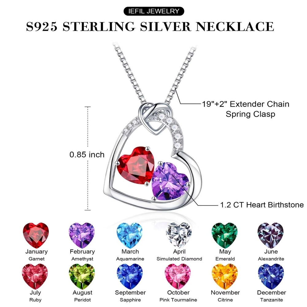 925 Sterling Sliver Double Birthstone Necklace: Trendy and elegant necklace is suitable for women in any occasions. You can give it to your wife, daughter, mom at Birthday, Anniversary. Chain length: 19"+2" Material: Both the chain and pendant are made up of sterling silver and plated with white gold. Comfortable Wear: Lead free, nickel free and cadmium free, no irritation. Package: The gift comes with a PU jewelry box and a polishing cloth, ready for give her as a gift. Jewelry Gifts for Women: ❤ Birthday Gifts ❤ Anniversary Gifts ❤Girlfriend Gifts ❤ Wife Gifts ❤Mom Gifts ❤ Bonus Mom Gifts Jewelry Gifts for Her: Thank you for love of our product, when you receive the gifts, we believe it is a surprise! UNIQUE DESIGN: The Double Birthstone Necklace skillfully blends two birthstones from different months. This design not only adds to the beauty of the necklace, but also symbolizes the strong bond and deep emotions between you and your significant others.Perfect gifts for your mom, grandma, wife,daughter,sister or any other awesome lady on Birthday, Anniversary or other special days. DAINTY GIFTS PACKAGE: A good gift carries heavy love. This double birthstone necklace is beautifully packaged with a PU jewelry box and a polishing cloth, ready for gift giving. Make a surprise for any elegant lady.It is a great gift for women on Birthday, Anniversary, Graduation, etc. MATERIALS: Our double birthstone necklace is made of 925 Sterling Silver to ensure the chain keeps tarnish-free, nickel free, lead-free, and hypoallergenic for a long time. The Birthstone Necklace is very suitable with women with sensitive skin. SIZE: The Necklace Chain Length is 19"+2.5". Adjustable Necklace Suitable for Most People. AFTER SALES SERVICE: Any question about your Double Birthstone Necklace, please contact us and we will answer your question within 24hours and give you a satisfactory answer.