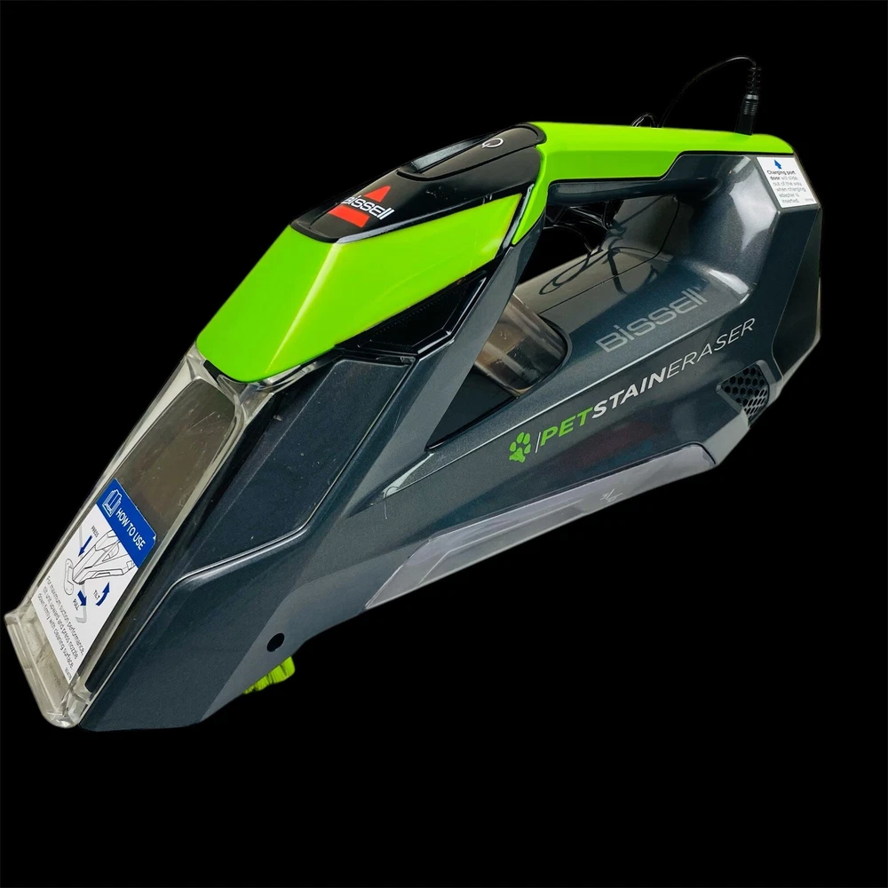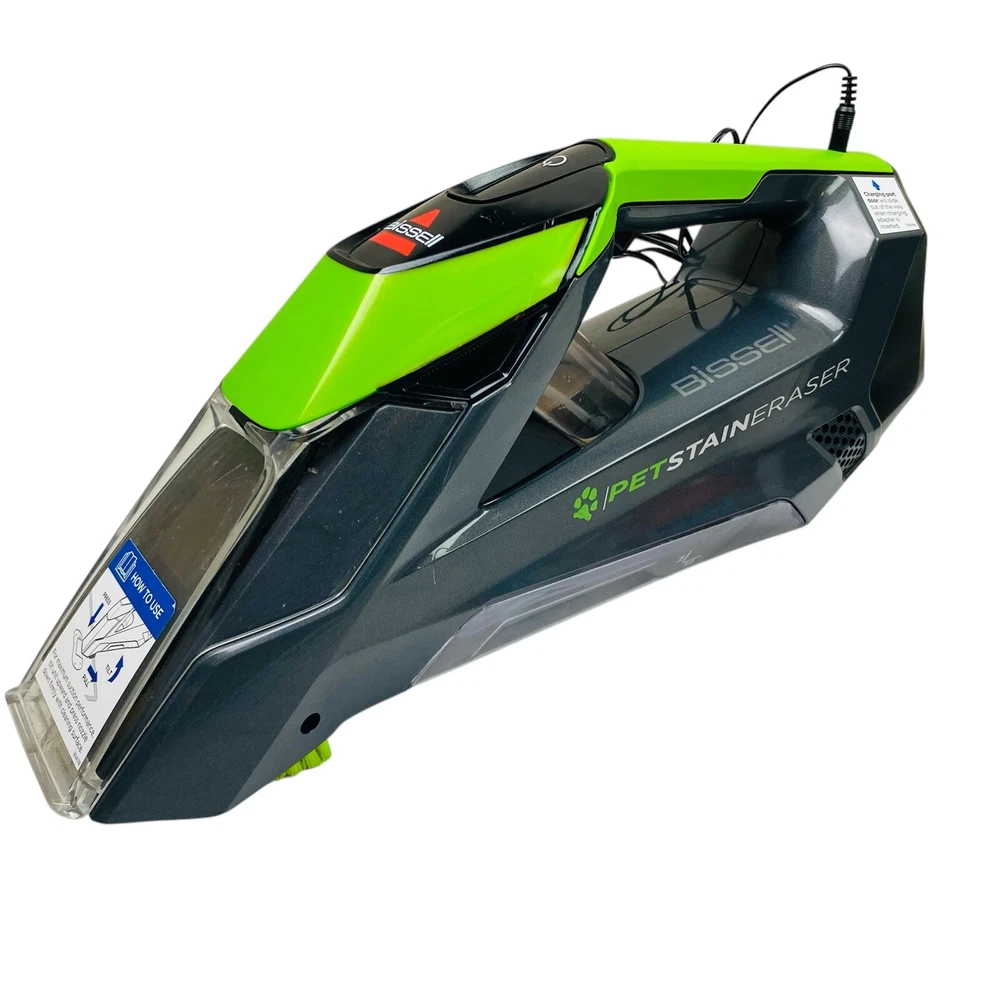 The Bissell 2003A Pet Stain Eraser is a handheld carpet cleaner with a 0.5 L capacity. It is black and green in color and comes with a charger. This portable cleaner is designed for pet stains and features odor eliminating technology, spot cleaning capability, and quick drying. It is cordless for convenience and easy use. Item looks and works like new, used very lightly . We ship same business day for super fast delivery.