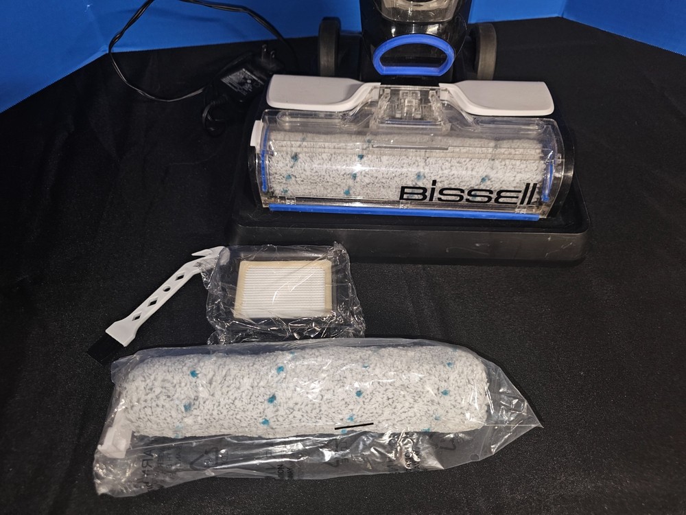 The Bissell Crosswave Max Deluxe Cordless Wet/Dry Sweeper/Cleaner is a versatile upright vacuum cleaner that offers 30 minutes of runtime. This model includes a filter, floor brush, and charger, making it convenient for users to clean their floors efficiently. With features such as battery operation, pet hair removal, removable brush roller, and multi-surface capabilities, this cordless vacuum cleaner from Bissell is a reliable option for keeping your home clean and tidy. CLEANED - TESTED - COMES WITH ADDITIONAL ROLLER BRUSH AND FILTER ($25.00 value) - PRINTED INSTRUCTIONS DOES NOT INCLUDE CLEANING SOLUTIONS FROM BISSELL!!