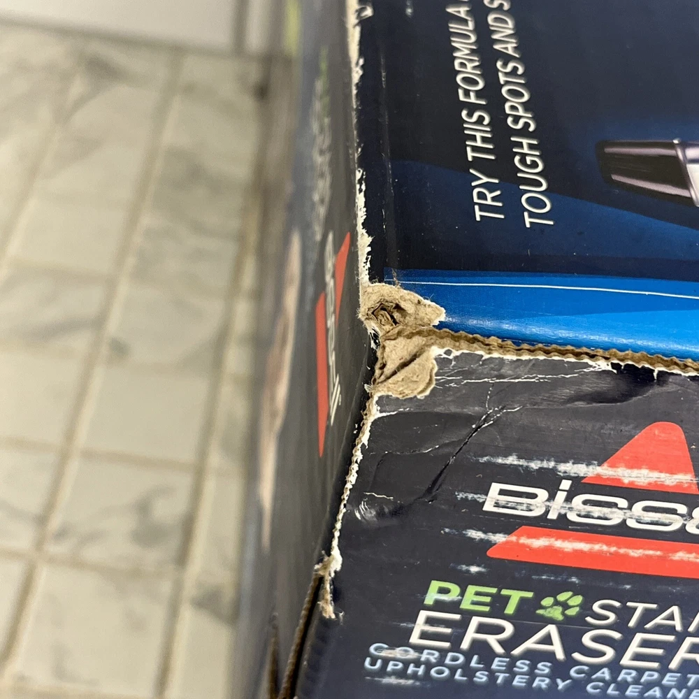 Bissell Pet Stain Eraser Cordless Portable Spot Carpet Cleaner Model 2003 Brand New!! It’s Cordless!!!! Also comes with 1-Circle Brush 2– 8 oz Trial Formulas Box has a bit of wear in the corners but in great condition overall!! See photos to judge condition Loc: 2 Top