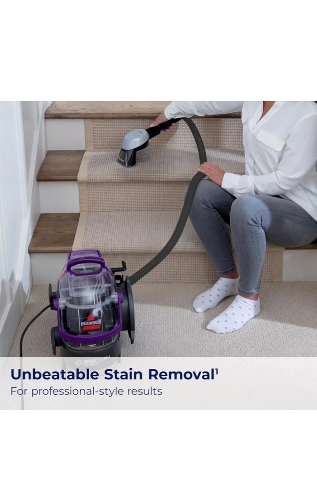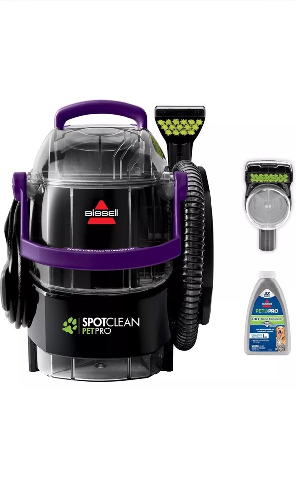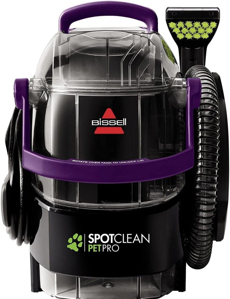 The Bissell 2458 SpotClean Pet Pro Portable Carpet Cleaner is a compact and portable cleaner designed specifically for pet owners. With a washable filter and 2.8L capacity, this purple cleaner is easy to use and effective in removing tough pet stains. The included floor brush and pet stain trapper tool make it convenient for spot cleaning carpets and upholstery. Additionally, the odor eliminating feature ensures a clean and fresh scent in your home. Weighing 13.25 lbs, this corded cleaner is lightweight and easy to maneuver, making it a convenient addition to your household cleaning routine.