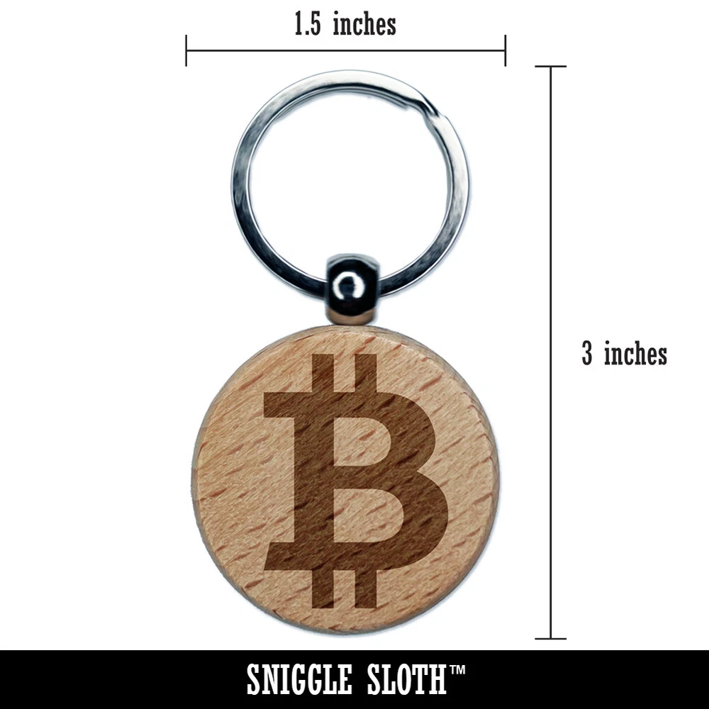Bitcoin Symbol Cryptocurrency Money Engraved Wood Round Keychain Tag Charm