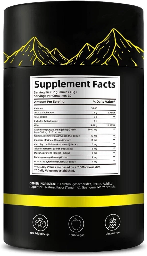 CONTACT US DIRECTLY FOR FREE & PREPAID RETURNS Biyode Pure Himalayan Shilajit Gummies | with Ashwagandha, Gokshura & Other PURE FROM THE HIMALAYANS: Our Himalayan Gold Grade Shilajit Gummies are harvested from the Himalayan Mountains at an altitude of 18,000 feet and are pure and unadulterated. This gummy is for those of you pursuing a healthy lifestyle, designed to boost energy and help you exercise and recover. LAB TESTED, QUALITY ASSURED: Our Himalayan Shilajit Resin Gold Gummies have been lab-tested and are free of heavy metals, fillers and harmful additives. It contains no added sugar, cornstarch, glucose syrup, artificial colors or fudge and is completely vegan, natural and non-GMO. NATURE'S ENERGY BANK: Containing 3,000mg of pure HILLAIRI per serving, combined with powerful ingredients such as Aloe Vera, Black Fungus, and Gokuroku Dew, our HILLAIRI GOLDEN GUMMY delivers 100% essential nutrients in a purely natural and organic form. Our Hilary Gold Gummies are free of heavy metals and chemical contaminants. STRENGTHENING AND REVITALIZING: This all-in-one nutraceutical combines powerful herbs such as Himalayan shilajit resin, ashwagandha, saffron, ghokulu and bhakti muri. Each gummy contains a high dose of Himalayan shiraj and ashwagandha, which are ingredients that help boost stamina, aid muscle recovery after exercise, reduce fatigue, and enhance overall health. TRAVEL FRIENDLY & INDIVDUALLY WRAPPED: Goodness of traditional ayurveda in a modern avatar; our travel friendly, “individually wrapped” gummies are a delicious way to add natural shilajit to energise your active daily lifestyle & enhanced workout routine. Have 2 Gummies a day for optimal result. REVIEWS The product came very well packaged. I'm very happy. thank you for everything. Seller strongly recommended. This is great! I definitely recommend! Product looks amazing Delivery was fast. Excellent seller, great communication. I advise everyone