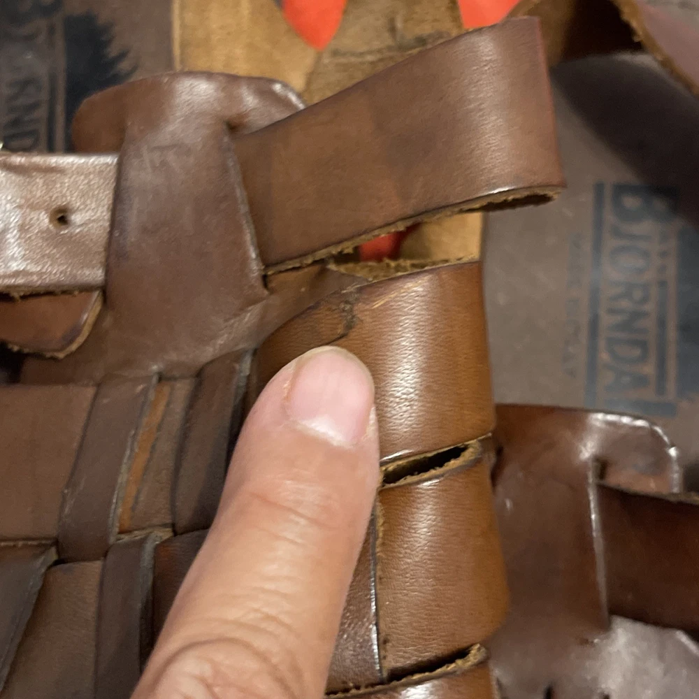 The leather is soft and light, and very pretty. It has a little damage, but it's not visible. I pointed it out with my finger. It's in very good condition. Please see the photos.