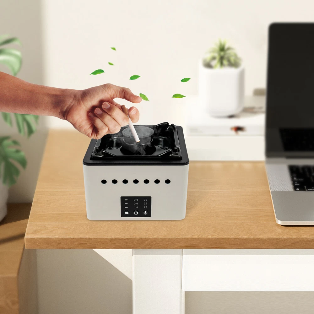 Package Includes 1 * Ashtray Air Purifier 1 * Filter 1 * USB Power Cord 1 * English User Manual Black 2 in 1 Multifunctional Smokeless Ashtray,Purifier Ashtrays with Filter NEW Description Second-hand smoke is extremely harmful to your family's health, but if you have our ashtray air purifier, you can effectively defend your family's health and facilitate your own smoking needs. It not only brings strong air purification but is also an ideal gift for your father or colleagues! Come and purchase it! Key Features Last and Durable: This product is made of high-quality ABS and ceramics with a painting process, which is strong, durable, wear-resistant, not easy to deform, and has a long service life. Good for Health: The cigarette contains harmful substances such as carbon monoxide, nicotine, acetone, acetaldehyde and ammonia that are harmful to the human body. This ashtray air purifier can quickly purify the air and reduce the harm caused by smoke. 2-in-1 Function: Triple filters can effectively remove indoor odors, formaldehyde, allergens , etc. You can also add essential oils(not included) to create a relaxing and enjoyable environment, while the equipped ashtray can facilitate your smoking use. Powerful Fan: Compared to traditional fans, our upgraded turbo fan paired with multiple holes on the side increases airspeed, purifying the air in multiple ways and reducing the harmful effects of smoke and dust. Thoughtful Design: Clear marks allow you to observe the remaining power, and adjustable purification time and wind speed knobs ensure easy and convenient operation, while the noise level is as low as 30 dB so that you and your family can sleep in healthy and fresh air. In addition, it can also be timed 1/3/8h to meet your usage needs! Lasting Endurance: The included USB cable allows you to charge from a computer, power bank or any 5V USB port, while the 8000mAh battery pack can be fully charged in about 9 hours and has a standby for 20 hours in 1st gear, 15 hours in 2nd gear and 10 hours in 3rd gear to meet your needs. Easy to Clean: With s imple structure, removable ceramic cylinder, and smooth surface, you can wipe it clean with a damp rag. Portable and Space-saving: The compact size (5.9*5.9*3.94 inches) and light weight make it not only easy to carry but also can be placed on a table without taking up much space. Ideal Gift: Thanks to its powerful functions and beautiful appearance, you can give it to your father or colleagues as a Father's Day or birthday gift. Details Cigarette Slot: 4 slots on top for easy placement of cigarettes. Silicone Pads: Four silicone pads on the bottom ensure stability when the product is in use. Application With an application area of 226.04 -322.9ft², it is suitable for homes, offices, hotels, cafes, bars, restaurants, courtyards, cars and so on. Specification Color: Black Fan: Turbo Fan Material: ABS, Ceramics and Silicone Process: Painting Mounting Type: Freestanding Power Source: USB Corded Control Method: Push-button Noise: 30dB Power: 3-5W Rated Current: 5V 2A Applicable Places: Indoor Working Principle: Negative Ion Application Area: 21㎡ -30㎡/226.04 -322.9ft² Air Purifier Air Volume: 50 m³/hour Battery Type: 1*8000mAh Battery(Included) Charging Time: About 9H Working Temperature: -15℃~60 ℃ /5-140°F Time Setting: 1/3/8H Standby Time: 20H (1st Gear), 15H (2nd Gear), 10H(3rd Gear) Product Size: 15*15*10cm/5.9*5.9*3.94 in Packing Size: 23*18*13cm/9.06*7.09*5.12in Gross Weight: 1.3kg/2.87lbs Package Includes 1 * Ashtray Air Purifier 1 * Filter 1 * USB Power Cord 1 * English User Manual Note Please note that this product does not include essential oils. We recommend replacing filters once every 3 months. Please do not block the exhaust outlet of the ashtray. It is recommended to use it in a weak wind environment. Please read the operating manual completely before use. And pay particular attention to the safety instructions included . Please allow the slight color difference caused by the shooting light and 1-3 cm error due to manual measurement, and make sure you do not mind before ordering. Payment Delivery details Terms of sales About us Contact us Payment We accept ebay payment 。 Fees such as import duties, taxes are not included in the item price or shipping costs. These charges are the buyer's responsibility. Delivery details Shipping: 2-9 working days to: USA Terms of sales We maintain high standards of excellence and strive for hundred percent customer satisfaction. Feedback is very important to us. We hope that you contact us immediately before you give neutral or negative feedback, so that we can address your concerns. It is impossible to address issues if we do not know about them! About us Your satis faction is our ultimate goal. We work hard to earn your trust and future business. Our certified technicians have tested each item before shipping. The unit comes with 1 year limited warranty on all manufacturing defects. a) If you receive a defective item, you may return it or ask for a discount. Please contact us within 14 days after you receive the package. b) What you returned must be intact and in its original packaging as re? u. Customer is responsible for shipping costs of the returned item. c) We will cover the cost of shipping back t with the shipping rate indicated in the registration page. We will send you a new unit or refund the full payment you paid. Thank you. Contact us Business Hour Business Hour: Monday To Friday: 8:30 AM to 5:00 PM (Beijing China time) Due to time zones, our reply to your questions may not be immediately. But within above working time, we will reply your email within 24 hours. If it's non-workdays, please kindly be patient and wait till Monday. Please contact us with ebay message. Please feel free to contact us if you have any questions. Monday To Friday: 8:30 AM to 5:00 PM (Beijing China time) Due to time zones, our reply to your questions may not be immediately. But within above working time, we w