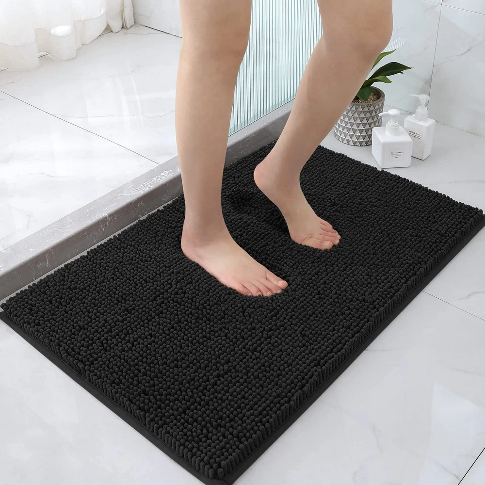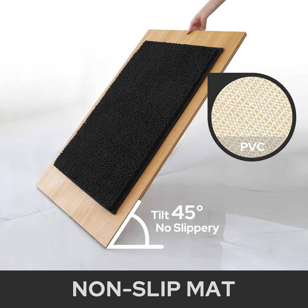 Black 20x32 Inch Ultra Soft Absorbent Nonslip Bath Rug