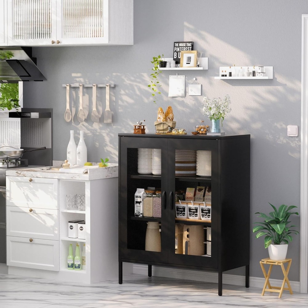 Product Description Features: Secure and Accessible: The cabinet features 2 flat panel doors with magnetic locks and rubber buffers, allowing for quiet and tight closure, while the mesh design promotes ventilation and visibility of contents. Durable Steel Construction: This storage cabinet is crafted from high-quality powder-coated alloy steel, ensuring long-lasting durability and sturdiness. Versatile Storage Solution: With 2 adjustable shelves and a spacious interior measuring 15.75"D x 31.5"W x 39.96"H, this cabinet offers ample storage space for various items in homes, offices, garages, or commercial spaces. Easy Assembly: This freestanding cabinet requires assembly, but comes with detailed instructions to guide you through the process. About this item Versatile Storage Solution: With 2 adjustable shelves and a spacious interior measuring 15.75"D x 31.5"W x 39.96"H, this cabinet offers ample storage space for various items in homes, offices, garages, or commercial spaces. Secure and Accessible: The cabinet features 2 flat panel doors with magnetic locks and rubber buffers, allowing for quiet and tight closure, while the mesh design promotes ventilation and visibility of contents. Easy Assembly: This freestanding cabinet requires assembly, but comes with detailed instructions to guide you through the process. Durable Steel Construction: This storage cabinet is crafted from high-quality powder-coated alloy steel, ensuring long-lasting durability and sturdiness. On Aug 17, 2025 at 19:26:20 PDT, seller added the following information: