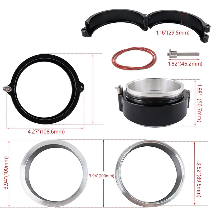 Aluminum Quick Release V-Band Clamp, 3.5"/88.9mm Intake Intercooler Pipe Clamp,Intake Intercooler Pipe Throttle Union Sleeve Feature 【Product Name】Quick Release V-Band Clamp 【Size】 3.5"/88.9mm (We also have 2"/2.5"/2.75"/3"/3.5"/4", if you want other size, you can email us to send you a link or directly into the store to find) 【Color】Black (We also have black/red/blue, if you like other colors, you can email us to send you a link or directly into the store to find) 【Material】Aluminum alloy 【Quantity】1 Set Specification 【Features】 Burst pressure rating of 800psi, with stands up to 400°F. 【 Size】 3.5" V band clamp is fit for 3.5" OD pipe. 【Sealing】 The V-band clamp is sealed by uniform pressure at the flange and NBR O-rings. 【Application】 These Aluminium clamp flange are designed for welding to your pipes and clamping together with the aluminum quick release clamp.Quick release V-Band clamp kit is suitable for intake intercooler pipes, throttle body, turbocharged intake pipes, etc. 【Note】Installation instructions are not included with the product, professional installation is highly recommended. If you have any installation problems, please contact us by e-mail, we will provide you with electronic installation instructions or installation video. Fitment: For intake intercooler pipes, throttle body, turbocharged intake pipes, etc. If there is any fitment uncertainty as to whether or not your car will be able to use this product, you can contact us by email! Package included: 1* Quick Release V-Band Clamp Note Manual measurement may exist 1-2cm error, please understand Please be reminded that due lighting effects, monitor's brightness/contrast settings etc, there could be some slight differences in the colour tone of the website's photo and the actual item. If there is an unexpected delay in transit of your goods, or if you find there are some unexpected problems with the product after you receive it, we sincerely hope you will email us first instead of opening a case or give bad reviews, it is very important to us and I appreciate your understanding. We guarantee that you can get a satisfactory solution.