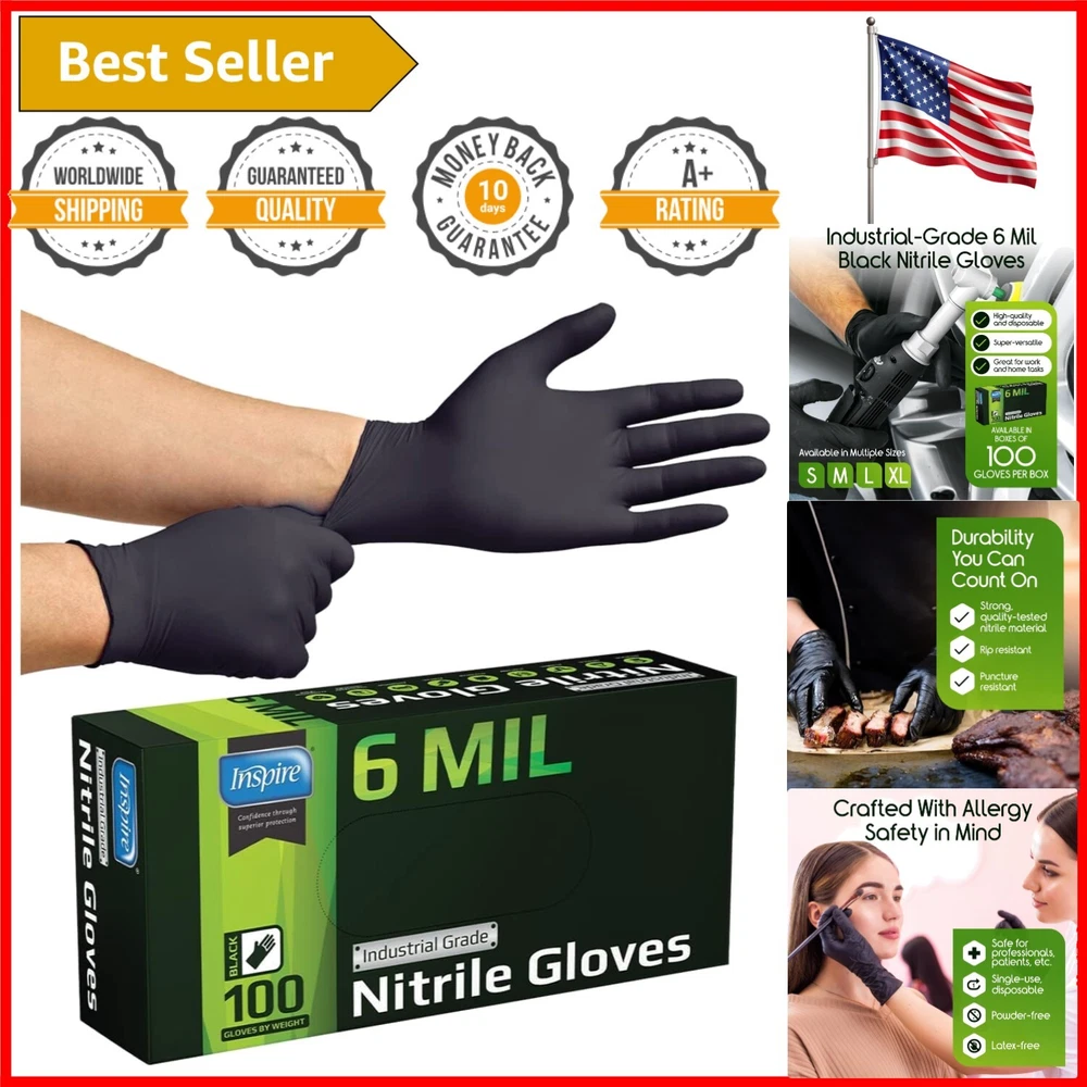 Black 6 Mil Nitrile Gloves - Multipurpose Disposable Protection for Every Task ‹ › ‹ › ‹ › ‹ › ‹ › ‹ › ‹ › ‹ › ‹ › ‹ › Black 6 Mil Nitrile Gloves - Multipurpose Disposable Protection for Every Task Features: Fabric Type: Nitrile Care Instructions: Hand Wash Imported from China Exam-grade and durable 6-mil thickness Rip and puncture resistant Textured fingertips for enhanced grip Touch screen compatible Latex free for allergy safety Benefits: Strong protection designed for both medical and industrial use Secure fit and ease of movement for superior dexterity Trusted by professionals in healthcare, emergency services, and food handling Multipurpose usage - Ideal for janitorial tasks, tattoo applications, mechanics, and medical environments Confidence in performance under pressure with pre-COVID quality standards Say NO to cheap alternatives that compromise on safety! Why choose our Black 6 Mil Nitrile Gloves? When it comes to protection, you deserve gloves that meet the highest standards of quality and durability. Our Black 6 Mil Nitrile Gloves are not just a choice; they are a necessity for those who value safety in their tasks. Whether you are a healthcare professional looking for reliable exam gloves or a mechanic needing durable protection, these gloves offer unmatched strength while ensuring your dexterity and sensitivity are never compromised. Designed for various applications—from industrial to household—our gloves provide the confidence you need to tackle any job securely. Experience the original quality that sets us apart from the rest. Choose Nitrile Gloves for a safer, more effective solution to your protective needs. Order yours today! Shipping Free & Fast Shipping - We offer free shipping to most of the USA with a normal delivery time of 3-7 days. However, due to the current situation, additional delivery time (up to 3 weeks) may be required for some items. Alternative Carriers - We may use alternative carriers (e.g. USPS, FedEx, UPS, etc.) to ensure your package arrives safely and on time. Due to the use of multiple carriers, we are unable to provide a tracking number automatically. Handling Time - Orders are processed and shipped within 1-2 business days of receiving cleared payment. Shipping Restrictions - Shipping to Alaska, Hawaii, Puerto Rico, Guam, and other US territories may incur shipping charges or delivery restrictions. Please contact us before ordering, or your order can be refunded/cancelled. State Restrictions - There may be restrictions based on your state of purchase. For example, certain items may not be shipped to California due to state regulations. Contact for Tracking Updates - If you require tracking updates or have any concerns about the delivery of your order, please feel free to contact us, and we will be happy to assist you. Return 30-Day Hassle-Free Returns - We want you to be completely satisfied with your purchase. If you are not, you can return the item within 30 days of receiving it for a full refund or exchange. Easy Return Process - To start a return, simply contact us and we will provide you with a prepaid return shipping label and detailed instructions. Restocking Fee - There are no restocking fees for returns. However, the buyer is responsible for return shipping costs if the return is not due to a seller's error. Refund Processing Time - Refunds will be processed within 5 business days of receiving the returned item in its original condition. Payment We accept all major credit cards, PayPal, and Apple Pay for your convenience. Your payment information is secure and encrypted to ensure a safe and seamless transaction. Please complete your payment within 3 days of purchase to avoid any delays in shipping. Feedback Your feedback is extremely important to us. We strive to provide the best products and customer service possible. If you are satisfied with your purchase, please take a moment to leave us a positive review. If you have any concerns or issues with your order, please contact us before leaving negative feedback. We are committed to resolving any problems and ensuring your satisfaction. Contact Us If you have any questions or concerns, please feel free to reach out to our customer support team. You can contact us through the eBay messaging system. We are available Monday to Friday, 9:00 am to 5:00 pm EST, and we will do our best to respond to your inquiry within 24 hours. Buy it now and enjoy a pleasant shopping experience! UPC: Not Set Model: Disposable Nitrile Gloves MPN: Disposable_Nitrile_Gloves Expiration Date: Disposable Nitrile Gloves Unit Quantity: 100 Intended Use/Discipline: Medical Laboratory,Industrial,Healthcare,Food Service,Tattoo,Janitorial,Mechanics,Cooking Material: Nitrile Brand: Unbranded Size: Medium Powdering: Powder-Free Country/Region of Manufacture: Not Set Unit Type: Unit