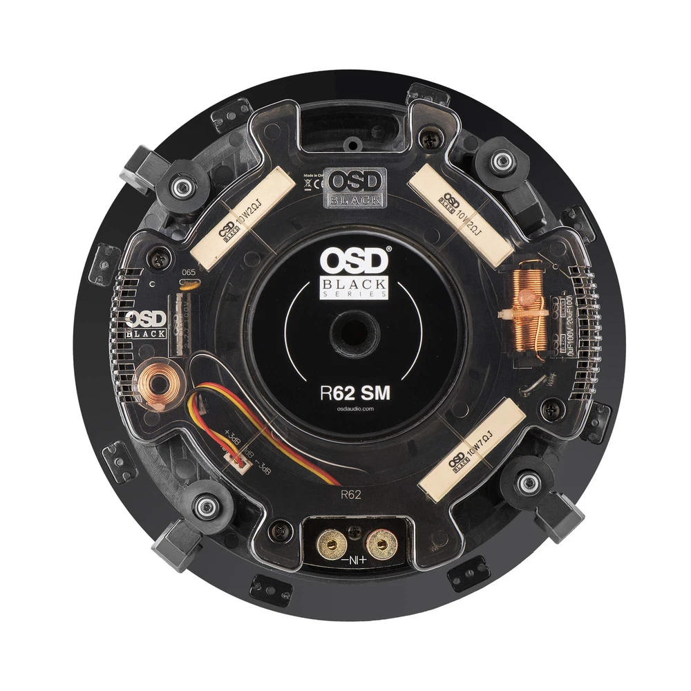 While in-ceiling speakers may be high and above and mostly out of sight, the internal components can be the difference between immersive, rich sound for distributed audio and home theater versus standard background speakers. Series in-ceiling speakers include the highest-grade components for optimal performance in a wide range of applications. Rigid polypropylene woofers for deep, rich bass and silk dome tweeters that fill in the critical high notes. Performance Series in-ceiling speakers deliver extraordinary sound quality in a flush-mount design that stealthily blends into any décor. Our Performance series in-ceiling speakers include a unique blend of components such as graphite mineral-filled cone woofers that provide better dampening and added rigidity and control over bass and mid-range sound. Parachute silk soft-dome tweeters offer a precise but gentle sound to high notes such as stringed instruments, while contour switches allow you to tailor high-frequency settings to your exact taste. BLACK Performance in-ceiling speakers also include advanced crossovers networks that act as an audio traffic cop to direct frequencies to the right speakers, so you hear high, mid, and low range with emotion-evoking detail. Whether you are planning a whole house audio system or a full-blown home theater, you'll appreciate the sound and sleek appearance of Series speakers, ensuring your audio experience is everything you expected and more. Specifications: • Speaker Type: 6.5" 2-Way Shallow Mount In-Ceiling Speaker • Woofer: 6.5" PP cone w/ Rubber Surrounds • Tweeter: 1" PEI Dome • Frequency Response: 75Hz - 20kHz • Power: 60W 1w/1m • Sensitivity: 86dB • Impedance: 8 Ohm • Diameter & Depth: 9.3" x 2.75" • Cutout Diameter: 7.7" • Mounting Depth: 3.1" • Selling Unit: Pair DISAPPEARING ACT: Series speakers feature flange-free Perfect Edge magnetic grilles that minimize the visible footprint of the speaker for a clean, elegant, and unobtrusive look SO SQUARE: Available grille kit allows any of our round in-ceiling Black Series speakers to fit in with an angular aesthetic of architectural elements such as lighting fixtures and air registers CUSTOM CROSSOVER: Mylar bypass capacitors enhance high-frequency extension for exceptional clarity. Components are shielded from debris and insulation while integrated air vents keep things cool CONTOUR SWITCH: The high-frequency contour switch with -3dB, 0 (flat) and +3 dB settings can be adjusted to match the speakers' performance to your room acoustics, from reflective rooms to fabric-heavy rooms PRO MOUNTING: Rotating mounting clamps have brass inserts to prevent thread stripping. Rubber damping pads reduce the amplitude of vibrations, improving resonance. Better installations, better sound
