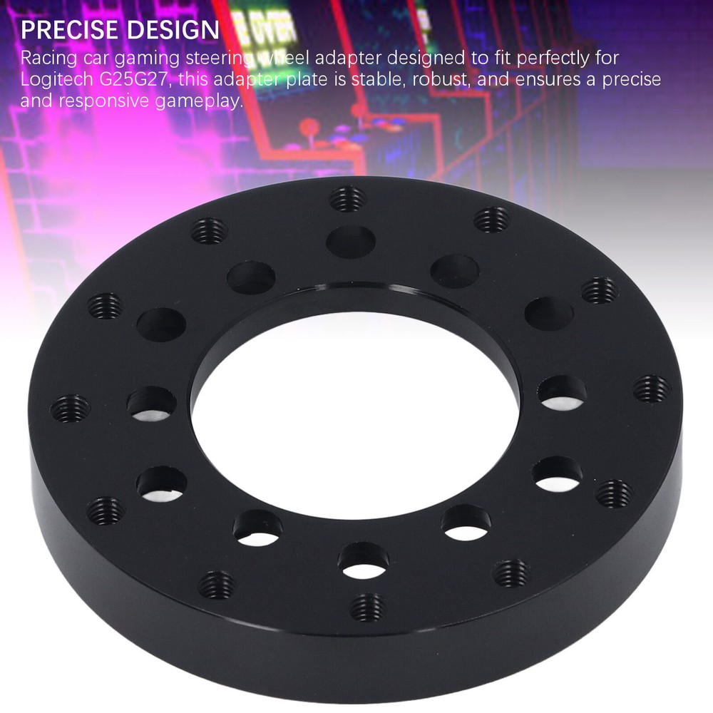 Feature: 1. CONVENIENT SWITCHING: Easily switch to this Alloy car gaming steering wheel adapter plate for an improved gaming experience with your for G25G27 racing steering wheel. 2. PRECISE DESIGN: Racing car gaming steering wheel adapter designed to fit perfectly for G25G27, this adapter plate is stable, robust, and ensures a precise and responsive gameplay. 3. HEIGHTENING PLATE: The included heightening plate, which offers a more comfortable gaming posture, reducing arm fatigue and enhancing control during gameplay sessions. 4. REALISTIC DRIVING EXPERIENCE: Immerse yourself in a more realistic racing simulation with this alloy steering wheel adapter plate, adding fun and challenge to your gaming experience. 5. EXCELLENT QUALITY MATERIAL: Crafted from high grade quality alloy, this adapter plate guarantees long term use without rusting, providing a accessory for your gaming setup. Specification: Item Type: Steering Wheel Adapter Plate Material: Alloy Application: for G25 for G27 Package List: 10 x Accessories
