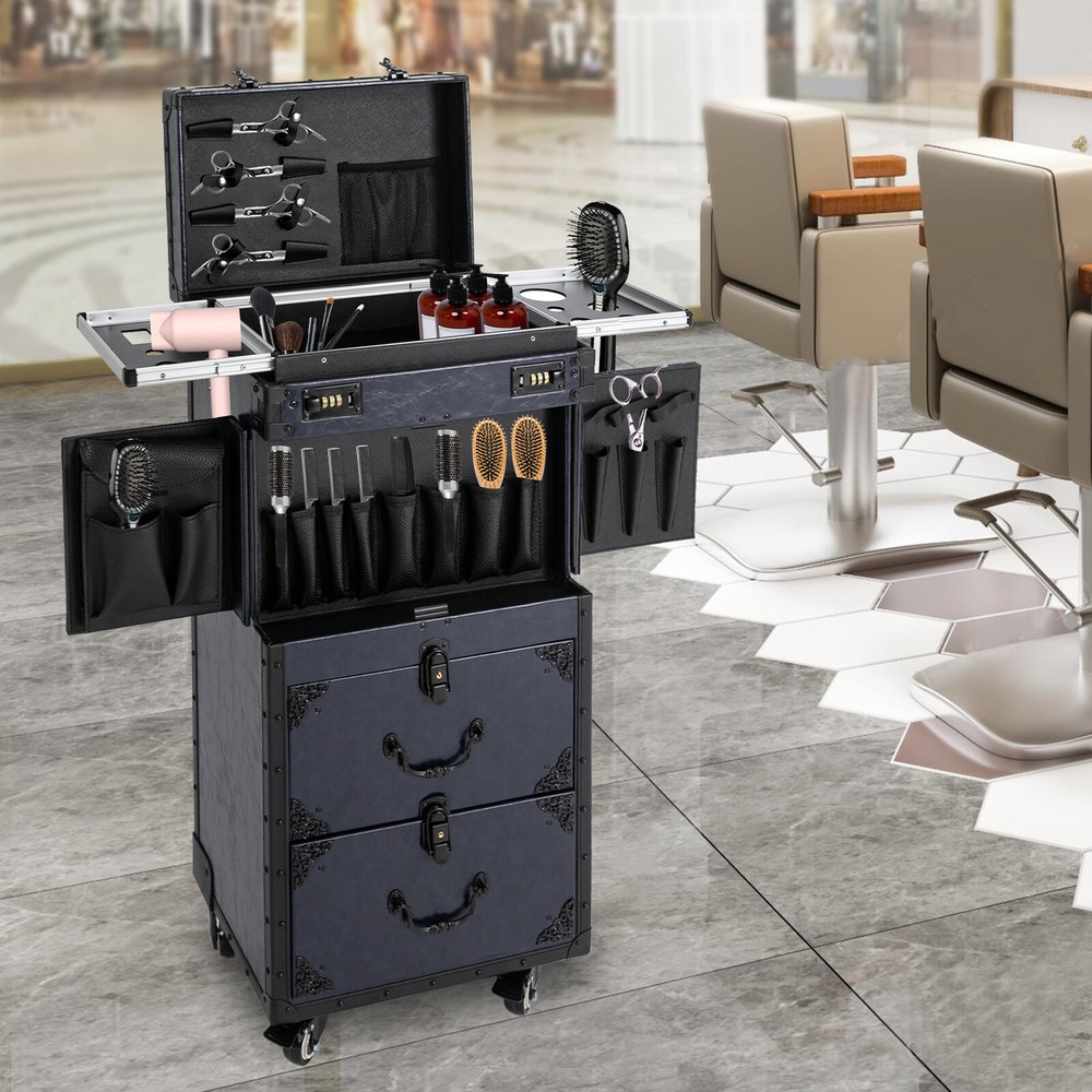Black Rolling Makeup Case Aluminum Salon Cosmetic Luggage 4 Wheel Organizer Description This makeup case trolley is made of high-quality materials, which make it sturdy, durable, and comfortable to touch. With its fashionable design, reasonable interior layout, and effortless movement design, it is pleasing to the eye, can hold various hairdressing tools, and is convenient to take with you for traveling and business trips, so that your indoor or outdoor hairdressing work will be more convenient and comfortable. Key Features Stylish Appearance: The product boasts a classic rectangular shape and retro style. The PU texture looks upscale and elegant, and the blue color gives it a dark formal look, emphasizing your professionalism and calmness during work. Easy to Move: The pull bar, top handle, and four universal wheels allow you to move it easily whether you are moving indoors or traveling for business or pleasure. Two of the wheels are equipped with brakes, making it your mobile vanity. Security Guarantee: It comes with combination locks and key locks(with keys) to securely protect your tools from falling out of the case over bumps and to prevent others from opening the case. Large Capacity: It comes with a multi-layer large capacity and each layer is built for storing different tools. You can use it to store your cosmetics, hair dryer, barber tools and so on, keeping your tools more organized. High-Quality Material: It is made of high-quality PU, wood board, and metal with the electroplating process, which is sturdy and durable. Easy to Assemble : The simple structure and minimalist design allow you to install it in a breeze, you just need to install the universal wheels and start to use it. Protective Package: The pearl cotton and bubble bag can better protect your product during transportation so that it can be delivered to you completely to the greatest extent. Ideal Gift: The practical functions and cool appearance make it a nice gift for your hairdresser friends, families, and colleagues. Details Drawer Handles: These ergonomic and comfortable handles allow you to easily pull the drawer and take your tools. Cladded Corners: They can dampen shock and protect the case in the event of an accidental crash to extend the product's lifespan. Application It is suitable for families and individuals as well as commercial places like barber stores, beauty stores, and nail salons. It is suitable for professional make-up artists, nail technicians, hair stylists, cosmetologists, nail students, and people who have mountains of cosmetics. Specifications Color: Blue Style: Modern Shape: Rectangular Process: Electroplating Assembly Required: Yes Mount Type: Floor Standing Material: PU, Woodboard, Metal Product Overall Size: 38*25.5*82cm/14.96*10.04*32.28inch Packaging Size: 44*33*87cm/17.32*12.99*34.25inch Gross Weight: 12.4kg/27.34lbs Net Weight: 9.5kg/20.94lbs Package Included 1*Makeup Case Trolley 4*Universal Casters 4*Keys Notes Please check the size carefully before ordering. Please note that cosmetics are not included. Please clear the wheels in time to maintain smooth movement. The service wear of the case is a normal phenomenon. In the process of daily use, please try to avoid excessive Verdana and drop to extend the lifespan of the product. Please allow the slight color difference caused by the shooting light and 1-3cm error due to manual measurement, and make sure you do not mind before you order. Payment Delivery details Terms of sales About us Contact us Payment We accept ebay payment 。 Fees such as import duties, taxes are not included in the item price or shipping costs. These charges are the buyer's responsibility. Delivery details Shipping: 2-9 working days to: USA Terms of sales We maintain high standards of excellence and strive for hundred percent customer satisfaction. Feedback is very important to us. We hope that you contact us immediately before you give neutral or negative feedback, so that we can address your concerns. It is impossible to address issues if we do not know about them! About us Your satis faction is our ultimate goal. We work hard to earn your trust and future business. Our certified technicians have tested each item before shipping. The unit comes with 1 year limited warranty on all manufacturing defects. a) If you receive a defective item, you may return it or ask for a discount. Please contact us within 14 days after you receive the package. b) What you returned must be intact and in its original packaging as re? u. Customer is responsible for shipping costs of the returned item. c) We will cover the cost of shipping back t with the shipping rate indicated in the registration page. We will send you a new unit or refund the full payment you paid. Thank you. Contact us Business Hour Business Hour: Monday To Friday: 8:30 AM to 5:00 PM (Beijing China time) Due to time zones, our reply to your questions may not be immediately. But within above working time, we will reply your email within 24 hours. If it's non-workdays, please kindly be patient and wait till Monday. Please contact us with ebay message. Please feel free to contact us if you have any questions. Monday To Friday: 8:30 AM to 5:00 PM (Beijing China time) Due to time zones, our reply to your questions may not be immediately. But within above working time, we will reply your email within 24 hours. If it's non-workdays, please kindly be patient and wait till Monday. Please contact us with ebay message. Please feel free to contact us if you have any questions. Feature! Stable performance, durable Style Modern Shape Rectangular Process Electroplating Assembly Required Yes Mount Type Floor Standing Type Makeup Bag Color Blue Material PU, Woodboard, Metal Features four universal wheels Brand OCASAMI MPN Does not apply