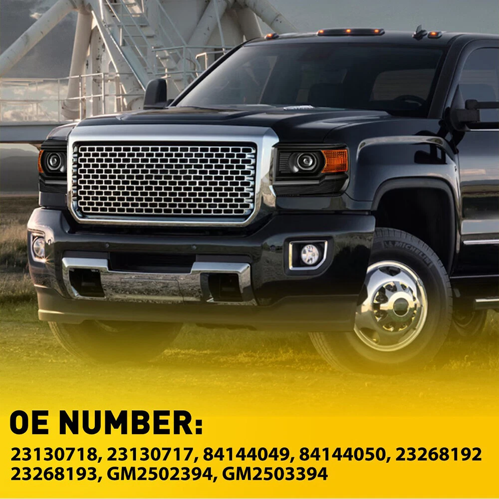 Fit for: 2014-2015 GMC Sierra 1500 Base / Denali / SLE / SLT models only 2015-2019 GMC Sierra 2500HD Base / Denali / SLE / SLT models only 2015-2019 GMC Sierra 3500HD Base / Denali / SLE / SLT / Chassis models only Does Not Fit Models with LED DRL Headlights Does Not Fit 2014 Old Body Style Models Does Not Fit Models with HID Headlights Specifications: OE number: 23130718 23130717 84144049 84144050 23268192 23268193 GM2502394, GM2503394 Material: ABS+PC (ABS Plastic Housing/Polycarbonate lens) Appearance color: 1.Housing Color:Black 2.Lens Color:Clear 3.Reflector Color:Amber Note: Black Amber Corner Headlight Projector Lamp For 15-19 GMC Sierra 2500HD 3500 12V Fit for: 2014-2015 GMC Sierra 1500 Base / Denali / SLE / SLT models only 2015-2019 GMC Sierra 2500HD Base / Denali / SLE / SLT models only 2015-2019 GMC Sierra 3500HD Base / Denali / SLE / SLT / Chassis models only Does Not Fit Models with LED DRL Headlights Does Not Fit 2014 Old Body Style Models Does Not Fit Models with HID Headlights Specifications: OE number: 23130718 23130717 84144049 84144050 23268192 23268193 GM2502394, GM2503394 Material: ABS+PC (ABS Plastic Housing/Polycarbonate lens) Appearance color: 1.Housing Color:Black 2.Lens Color:Clear 3.Reflector Color:Amber Note: Projector √ ( Include) DRL × (Not Include) Bulb × ( Not include) Features: *Easy to install: Direct replacement, drilling and cutting are not required. *Superior quality: Made of ABS and PC materials with toughness and heat resistance functions to ensure its long service life and durability. *Angle adjustment: Equipped with a headlamp Angle adjustment knob, you can adjust the best Angle of view through the knob. *Suggestion: 1.Please confirm the OE number before purchasing!!! 2.Professional installation is required!!! Packaging include: Headlights*2(Left+Right) Item Specifics Brand AUXITO Number of Bulbs No Bulbs Included Type Headlight Assembly Features Durable, Direct Fit, Easy Installation, No Drilling Required Placement on Vehicle Front, Left, Right OE/OEM Part Number 23130718, 23130717, 84144049, 84144050, 23268192 Manufacturer Warranty 2 Years Material ABS Plastic Housing & Polycarbonate Lens Tips Professional installation is required Housing Color Black Lens Color Clear Reflector Housing Color Amber Interchange Part Number 23130718, 23130717, 84144049, 23268193, GM2502394 Universal Fitment No Number of Pieces 2 Fitment Type Direct Replacement Fitment 1 For 2014-2015 GMC Sierra 1500 Base Denali SLE SLT Fitment 2 For 2015-2019 GMC Sierra 2500HD Base Denali SLE SLT Fitment 3 For 2015-2019 GMC Sierra 3500HD Base Denali SLE SLT Chassis With Projector Yes With DRL No Payment We only accept PayPal payment, should be received within 3 days from the date of purchase. Please keep the consistency of Paypal address and ebay address. Payment should be made within 4 days once you won a item ,or ebay will launch Unpaid Reminder agaist you and there will be bad record on your ebay account . Buyers are responsible for import duties, custom fees and taxes.Please check with your country's custom office to determine the additional costs before you finally make the purchase Shipping All items will be shipped in 48 hours after receiving your payment . We ship this item to US only via USPS first class mail. It usually takes 3-6 working days to deliver. Returns We offer 30 days return policy. Please contact us within 30 days t from the date you receive your order if you have any issues with the product or want return .Refund will be send after we got your resend package. All returned items should be in the original packaging , return tracking information should be provided .. Buyer is responsible for return shipping cost due to the problem not caused by item quality itself . Contact Us Our office hours are MONDAY - FRIDAY 9:00PM - 6:00PM PST, but we will response you once we get your message .There will be some delay on response if you send message or E-Mail on weekend. FAQ Q1: Will this bulb fit my vehicle? A: We can match almost any vehicle to one of our bulb sizes. eBay only lets us include partial vehicle fitments per listing, but if your vehicle does not show up on the compatibility table at the top of our listings, welcome you to contact us for free consulation before purchasing a product. Q2: My item has not arrived, what's taking so long? A: Sometimes items take longer than expected, especially if it’s going far or to rural area. Check with your post office to see if your item has been held up. Sometimes USPS will not update a tracking number until it has arrived at its destination. If your item still has not arrived after a few days, let us know so we can double check for you and help solve it asap. Q3: Do I need to mention the Year, Make and Model in the notes when place order? A: YES. Please include the Year, Make, and Model in the notes section during checkout to ensure you receive everything needed for your kit! Q4: My bulbs won't fit, help! A: Special bulb holder may be required. See if you can take the holder from the stock bulb. If not, let us know. The bulb size may be wrong, double check the item you received with the item you ordered. Do you have an aftermarket lighting housing? These may not be perfectly fitted for aftermarket bulbs and will require some manual modifications. Q5: Neither side lighting up? Both sides flicker, flash, or work inconsistantly. A:Check the headlight fuses, and then check the ballast plugs to insure correct installation. If this doesn't work, there may be a voltage problem with the vehicle. You probably just need a relay or capacitor. Q6: WARNING ABOUT POLARITY Unlike halogen bulbs, LED are polarity sensitive. BEFORE you start your LED kit installation, verify the polarity on your vehicle by simply plugging the LED bulb into your vehicle socket. - if your light turns on, please proceed to install both bulbs onto your vehicle. - if your light DOES NOT turn on, disconnect the bulb and flip the socket in order to reverse t