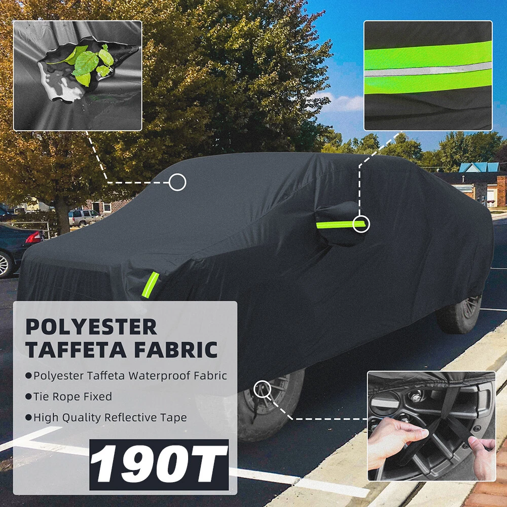 Pickup Truck Full Car Cover Black Anti-UV Outdoor Protection for Toyota Tundra Material: Polyester Taffeta(190T) Size: TXL: 238'' x 86.6'' x78.8'' Features: All-Weather Protection Car cover 100% waterproof all weathers. Car cover can achieve the effort of Sunproof, Windproof, Hailproof, Snowproof, Dustproof Scratch resistant and protect your vehicle from odirt, UV pollutants,Sand, Leaves, Branches, Snow, Rain, Frost, Birds Dropping. Premium Material Lightweight material, The high-density 190T polyester fabric makes it perfect and long use for outdoor/indoor against all weathers. And silver surface is high temperature resistant with reflecting high-sensitivity performance in hot summer. Professional and Safety Equipped with Windproof straps. At Front & Rear. To Fix Your Auto Cover In Heavy Wind Weather. F luorescent Light Strips are attached to the front, middle and rear of the car to prevent collision accidents in dark environments and greatly improve the safety of roadside parking at night. Wide Fitment Fit for Most Pickup. Delivery contents: 1 x Car Cover, 1 x Storage Bag, 6 x F luorescent Light Strip. Notice: Please take measure before your purchase. Your order will be shipped within 1 business days ( Excluding Weekends and Public Holidays)after your payment clear. * We only ship out within US. Domestic Packages are shipped via Standard Delivery from our stock in Walton, KY, US. * Item will be delivered within 1 - 6 business days in US. We ship to Paypal confirmed address ONLY. Please make sure your address in PayPal is matched with your shipping address before you pay. * We do not offer in store pick up and return service. Regardless of response, buyer can return item within 30 days and get a full refund. Item must be returned in good condition in original packaging, not damaged, not stained, no cut.
