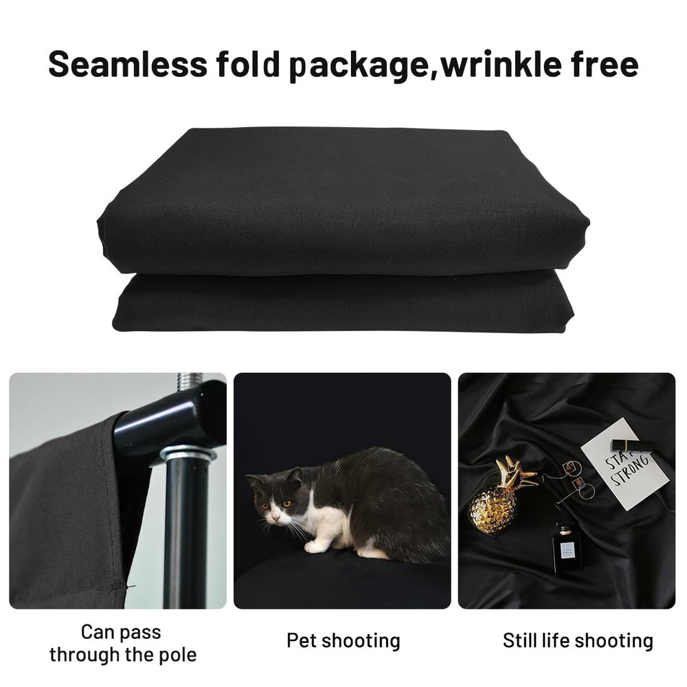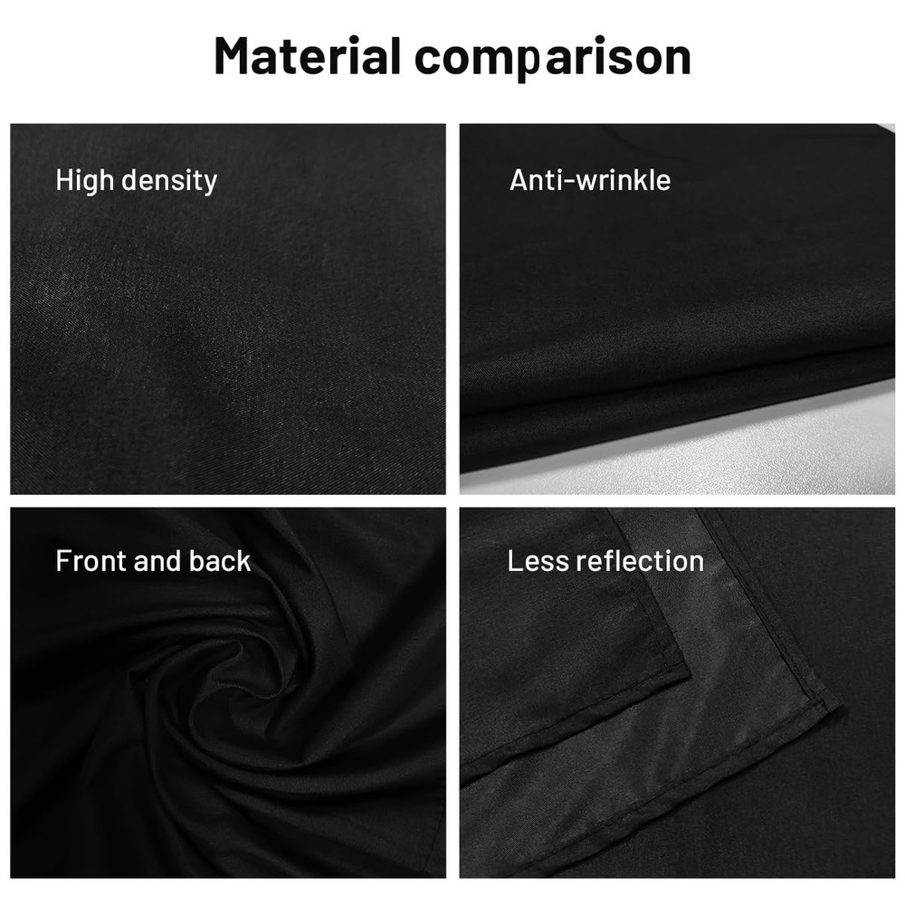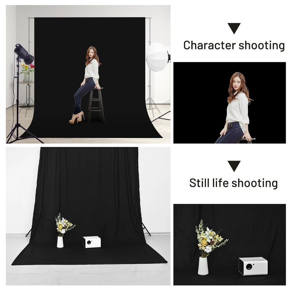 Green Black White Backdrop Background for Photography Photo Booth Backdrop for Photoshoot Background Screen Video Recording Parties Curtain 【Polyester Material】 Made of 100% polyester can effectively absorb light and eliminate reflection than polyester and non-woven fabrics. Strong enough to be machine washed and reused without fading. Black background is made of high-density opaque polyester fabric, this kind of cloth wrinkles less than cotton material and is easier to restore.Please kindly note that the BACKGROUND STAND IS NOT INCLUDED! 【Double-sided Use】5 X 6.5 FT back background fabric has double different sides for multiple photography uses. If the front side doesn't satisfy you, you can try the back side. Good lock stitching technique to prevent the photography backdrops from wearing and tearing. 【5 X 6.5 FT in Size】The width of the photo backdrop is 5 ft and the length is 6.5 ft. This portable green screen backdrop is big enough to cover an entire wall and a large part of floor, professional for portrait photos, photography shooting, making video, video-conferencing, live stream, eaching online, birthday party. 【Machine Washable】Backdrop curtain can be cleaned in a washing machine for daily cleaning. It can be washed multiple times without fading. After washing, please smooth the backdrop and lay it flat 【Wide Application】This photography backdrops is thick , suitable for professional or amateur photographer, newborn photography,video editor, filmmakers and Youtubers etc. Ideal for products, portrait photoshoot, full body shots, professional photo studio shooting, home, school, wedding, baby shower, parties decoration, food pictures, live game
