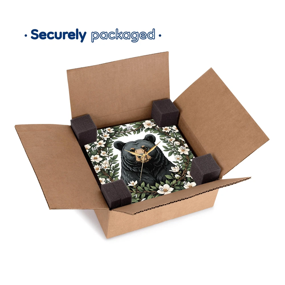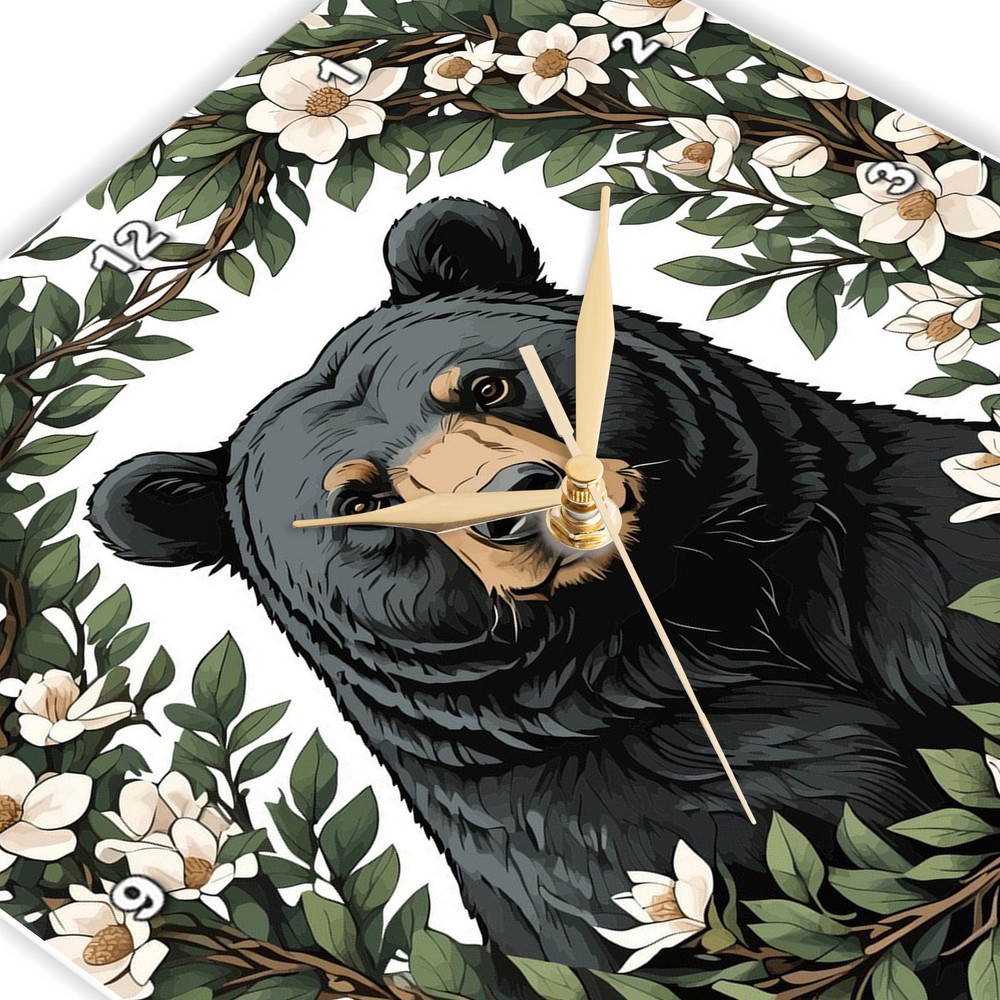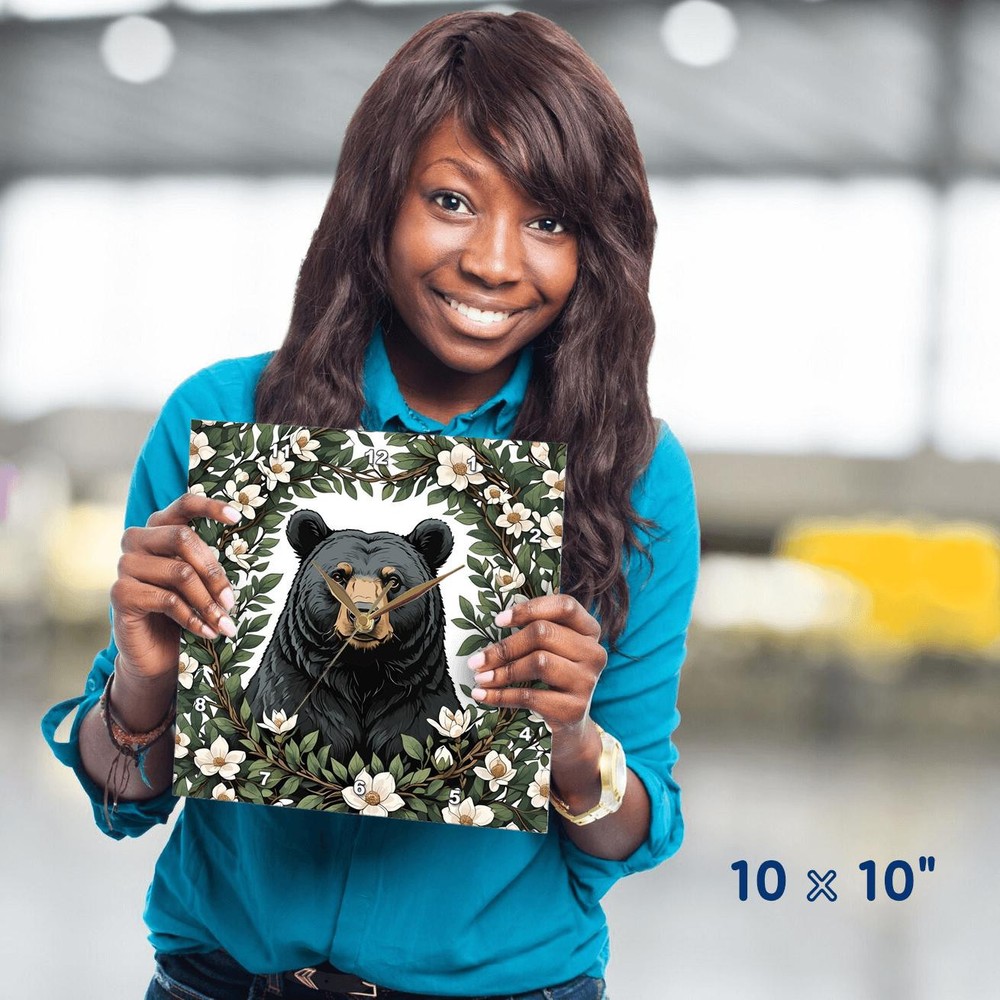 Black Bear Peeking Through Magnolia Flowers Wall Clock by 3dRose