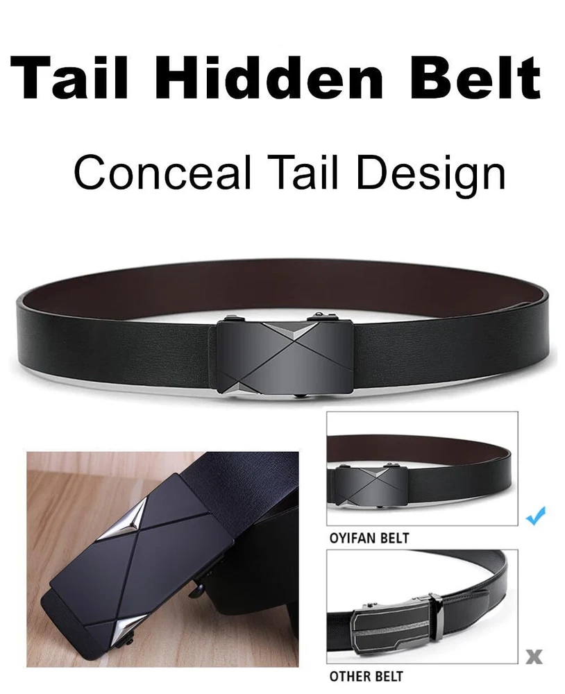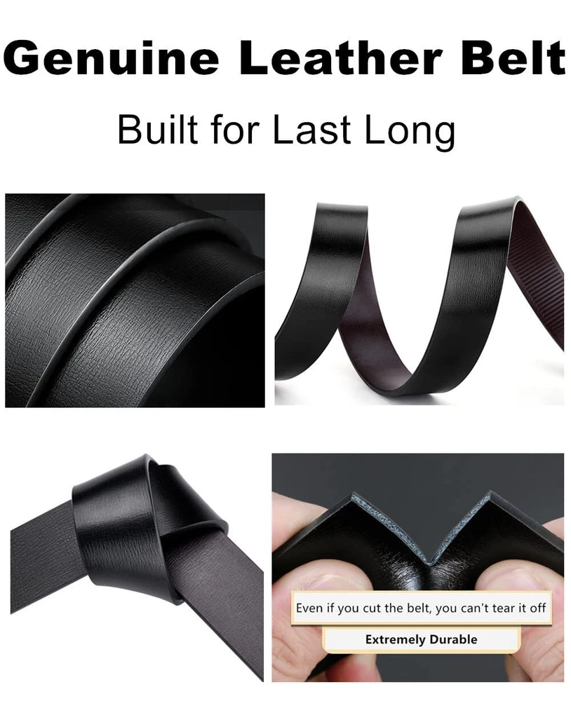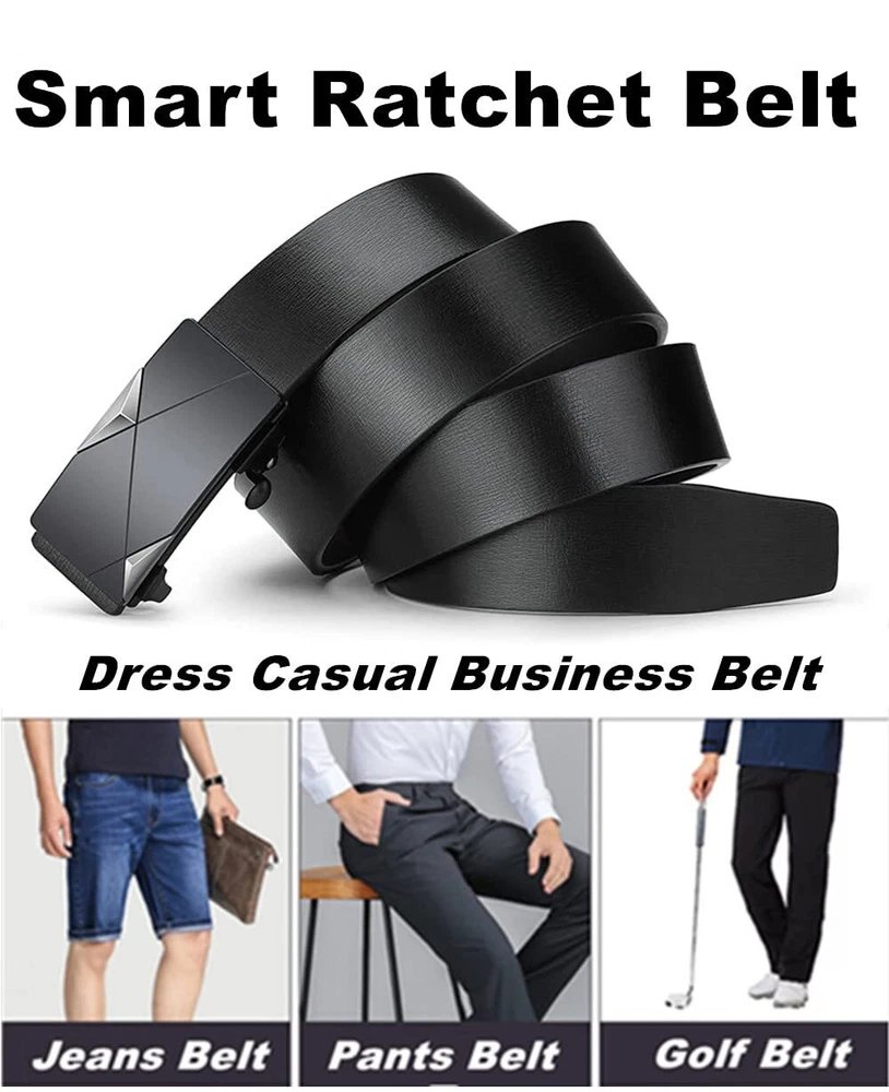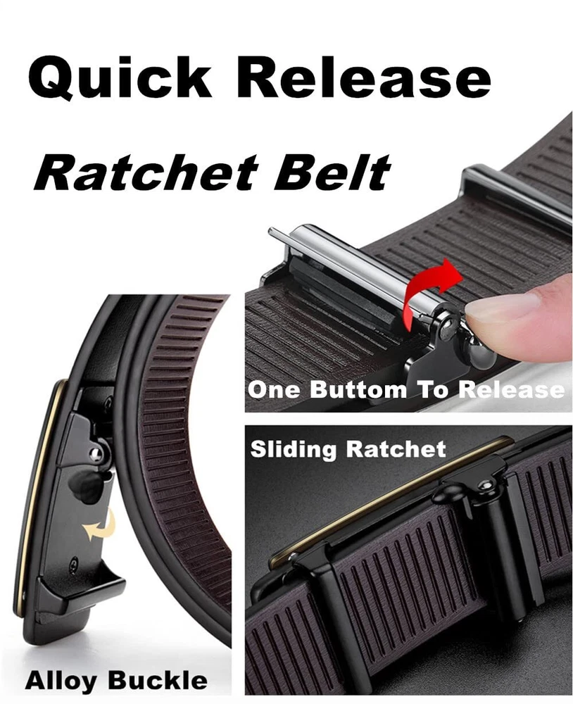 【High-quality and Durable Material】: The ratchet belt is made of genuine leather with durable metal slide buckle. Strong even when the belt is cutting. Say goodbye to cracking. 【Upgraded Automatic Slide Belts】: Different from the traditional ratchet belts, our leather belt comes in an automatic buckle and toothless strap, not redistricted by limited holes and ratchets and no need to resize the belt by cutting any more. The whole belt is available and you can fasten the belt wherever you like even without ratchets. 【Belt Tail Hidden Design】 : The concealed belt tail make you look better and avoid the embarrassment of exposed belt tail. With a simple and elegant look, this dress belt offers fashion and function for use with any casual or professional outfit. Ideal men's accessory as an every day belt with jeans or uniform and also suitable with formal wear. 【Easy to Use】: Just slide the belt into the buckle and pull the belt through, the buckle simply auto locks the belt, release buckle by simply shifting small lever. Packaging in exquisite box, the belt is an awesome gift choice to father, boyfriend, husband, friends on birthday, Father’s Day, Christmas, Graduation. 【Customer Service】: Please feel free to contact us via Amazon. We will reply you within 12 hours. Full refund or Free replacement with any product issues.