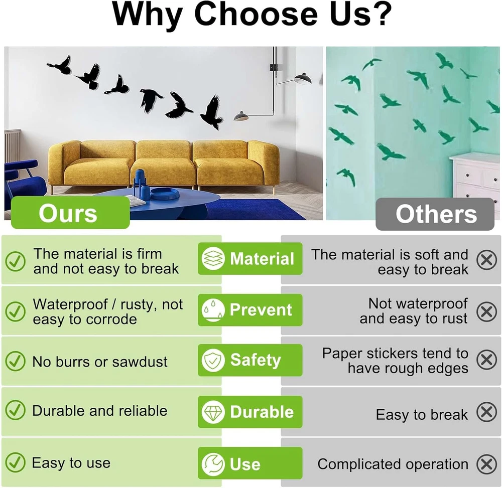 Store New Arrivals Add to Favorite View Feedback Contact Black Birds Metal Wall Decor, 6PCS Black Birds Metal Wall Art Decorative for Living Room, Bathroom, Kitchen, Indoor/Ourdoor Metal Wall Art Decor(Black-Set of 6 Birds) Description Age Range Description Adult Style Minimalist Number of Items 6 Pattern Birds Theme Bird Subject Character Bird,Birds Item Shape Rectangular Unit Count 6 Count Room Type Bathroom,Bedroom,Hallway,Kitchen,Living Room,Office Material Metal Color Family 黑与白 Package Type Flat Free Package (FFP) Wall Art Form Wall Hanging Decor Paper Finish Metallic Frame Material Metal Finish Type [IN] Oil Rubbed or Oil Painted Paint Type Oil Item Weight 0.45 Kilograms Special Features Weatherproof Item Dimensions L x W 7"L x 6.5"W Orientation Landscape Mounting Type Wall Mount Color 6Pcs Birds Animal Theme birds Number Of Panels 4 Is Original Artwork No Recommended Uses For Product Indoor, Outdoor Frame Type Unframed Set of 6 PCS Black Metal Wall Decor Metal Birds Wall Art Decorations for The Home Indoor/Outdoor. Four Dynamic Birds in Different Shapes, Handmade. The Home Black Concise Decoration, Living Room Bedroom Kitchen Balcony House Minimalistic Modern Decorations Pure metal: metal birds wall art is made of lightweight metal, which is not easy to break or corrode compared to wood, does not fade, has no odor, is durable and reliable, has no burrs, and can be hung for a long time. Indoor and outdoor: branch wall hanging signs are suitable for decorating your home decor, you can display them in your home such as bedroom, living room, kitchen, hallway or outside your house and office, this modern metal birds wall art decoration really adds warmth style to your home Product Description 2022 Birds Wall Art Decor Set of 6 ABOUT US We offer the best prices around on high quality products. Our E-store includes media such as books, movies, music and games while offering electronics, toys, sporting apparel, clothing, tools, general home, garden items and more. SHIPPING We are always working hard to ensure your package arrives as soon as possible. Please understand that some factors like weather, high postal traffic, and the performance of shipping companies are outside of our control. We offer free shipping to the lower 48 states and ship within 2 business days of payment, usually sooner. We do not accept P.O. Boxes. Please provide a physical address. For shipping outside of the continental USA, we only use eBay's Global Shipping Program.The item is shipped to KY and then sent to the rest of the world. International customers are responsible for all duties and taxes. Continue to check out in order to calculate costs for shipping the item to your country. Messages regarding eBay's Global Shipping Program MUST be directed at eBay EXCLUSIVELY. RETURNS We offer a 30-Day Return Policy on items which you are not completely satisfied with. You have the option for a full-refund or an exchange of the item. No returns are available on items shipped outside of the USA. PAYMENT We accept PayPal. CONTACT US This page content is yet to come Please ad us to your favorite seller and visit again later Thank You CUSTOMER SATISFACTION We try our very best to make sure every customer is completely satisfied. If there's a problem, message us! We're happy to help. WE ACCEPT Copyright © 2021 AutoDS. | All Rights Reserved
