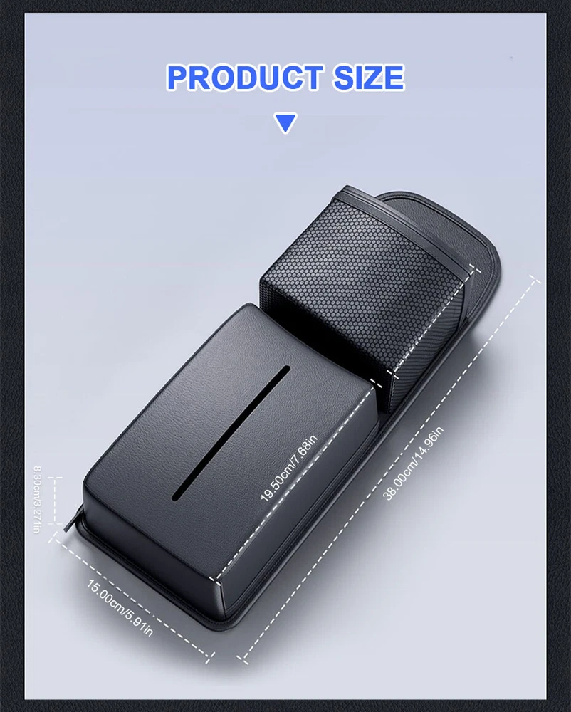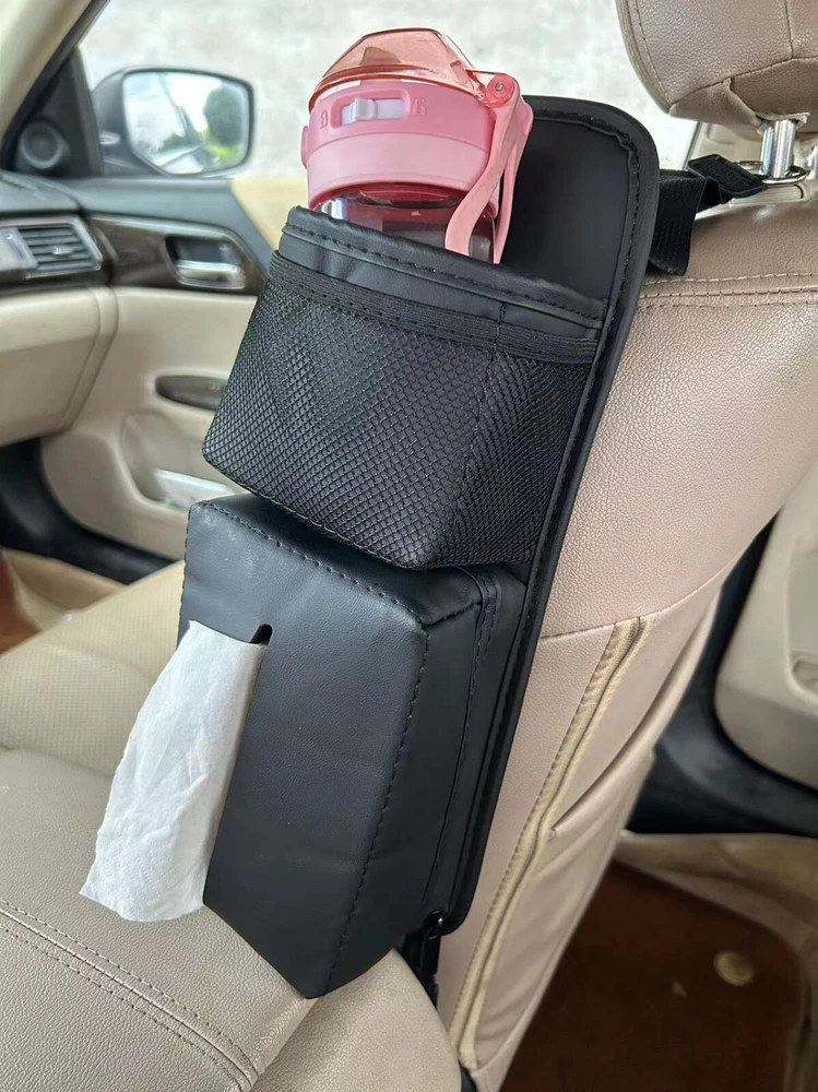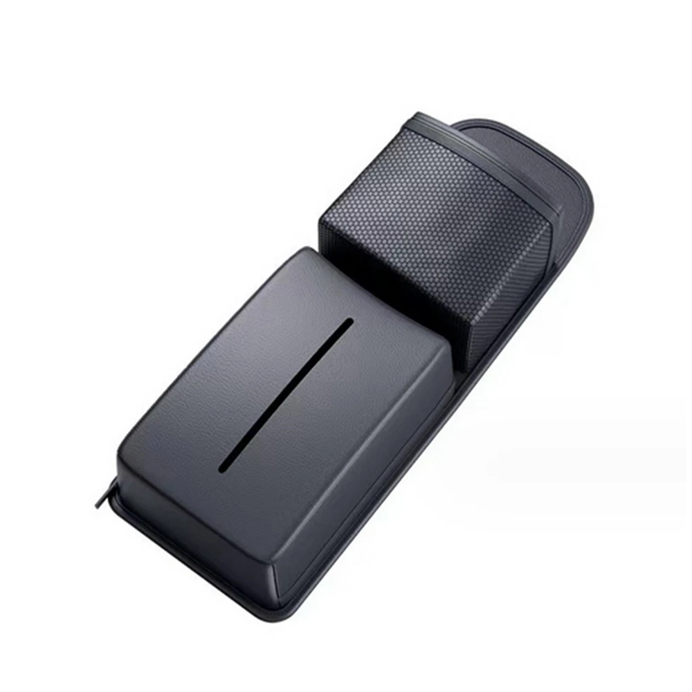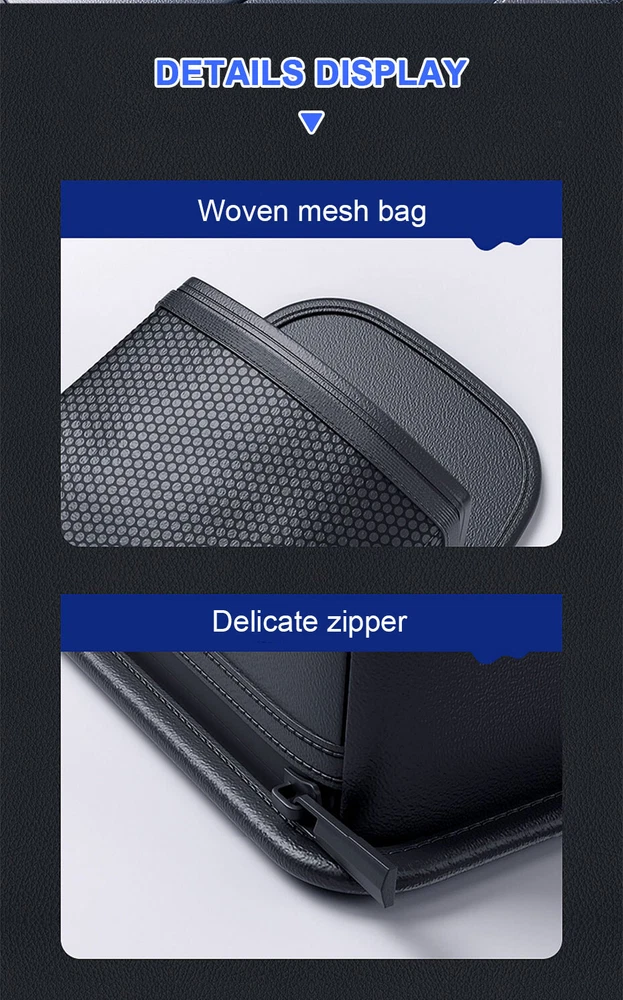 Feature: Keep your car clean, tidy and organized; Prevents things from getting lost and your vehicles interior getting damaged; Ideal for Cellphone, Keys, Cash, Cigaretes, Drinks, Tissues, Sunglasses, Bits and pieces; Compatibility: Universal for almost every cars, trucks, family or work vehicles; Specification: Product Name: Car seat side hanging bag Material: PU Leather Color: Black Quantity :1PC Packign List: 1*Storage Bag ( Excluding tissue )
