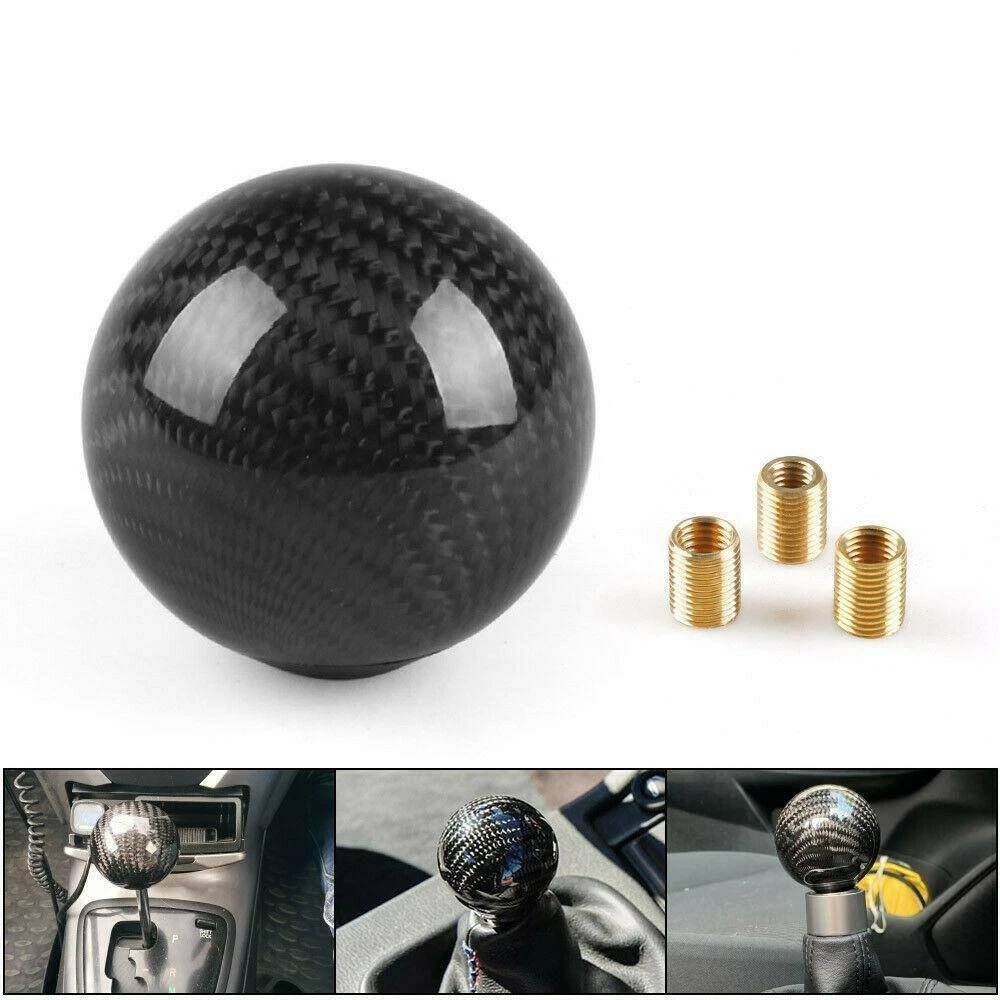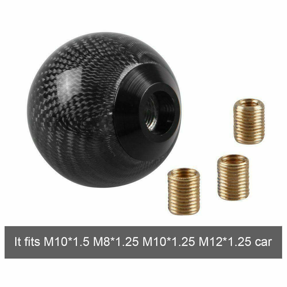 Black Carbon Fiber&Aluminum Round Ball Car Manual Shift Knob +Thread Adapters Features: 100% Brand New in the Box, Never Used!! Material: High quality real carbon fiber and aluminum Color: Black Carbon Fiber Diameter: approximately 2" Hole Diameter: 14mm/0.55" Fitment: 1) This black ball style carbon fiber gear shift knob for both manual transmission vehicles. 2) The thread of this real carbon fiber shift knob come with universal thread adapters which will fit most cars such as Acura Honda Mazda Mitsubishi Toyota Scion Nissan Infiniti Subaru and more. Installation: 1.Remove the Original Shift knob 2.Select the Suitable Adapter for Shift Knob in the 3 Adapters 3.Screw the Adapter on the Thread of Gear Shifter 4.Screw the Shift Knob on the Adapter Package Included: 1x Carbon Fiber Ball Shift Knob 3x Adapter eBay Cross Border Trade powered by ChannelEffect