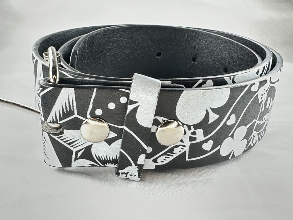 Add a pop of style and personality to your wardrobe with our Monochromatic Casino Leather Belt – the ultimate statement accessory for men and women alike. Made from genuine leather, this belt combines durability with eye-catching style, featuring a bright white graphic design that makes it perfect for casual wear, festivals, and daily fashion. The high-quality metal buckle offers a secure fit while complementing the bold pattern for a clean, polished look. Whether you're pairing it with jeans, shorts, or adding a fun twist to dresses and skirts, this belt is sure to stand out and turn heads. Available Sizes: Small: 30"-32" Medium: 34"-36" Large: 38"-40" X-Large: 42"-44" Perfect for both men and women, this versatile belt makes a fantastic gift for friends, family, or anyone who loves fun, unique accessories. Bring color, comfort, and confidence to your outfit with a belt that’s as stylish as it is sturdy. Key Features: ✅ Made from genuine leather for durability and long-lasting wear ✅ Bright white graphics on black design for a bold fashion statement ✅ Secure and stylish metal buckle closure ✅ Unisex – suitable for men, women, and teens ✅ Available in multiple sizes for the perfect fit ✅ Great for casual outfits, festivals, and everyday wear