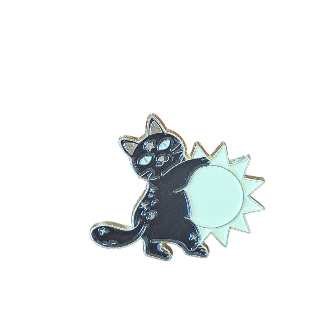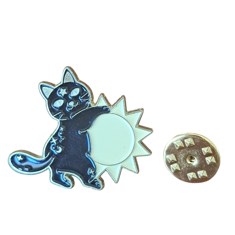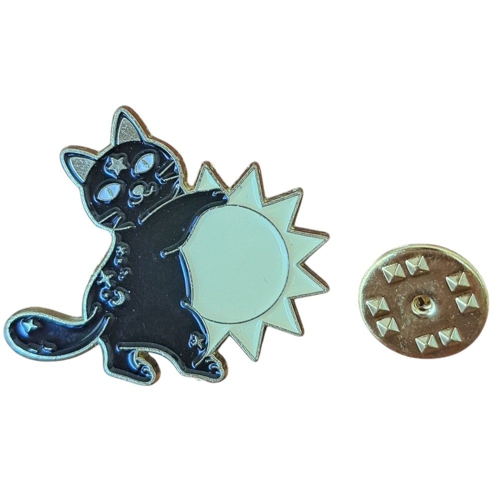 Black Cat Yellow Sun Enamel Lapel Hat Pin Stars Moon 1"