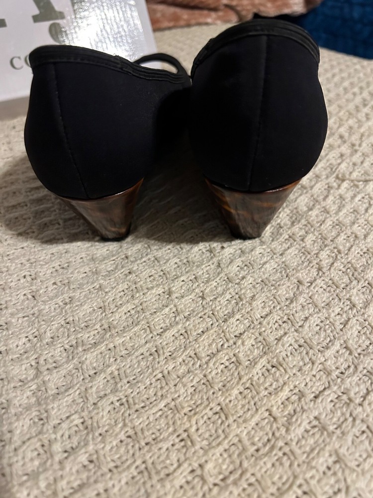 Step out in style with the A J Valincia black wedge heels, featuring an eye-catching cheetah print on the wedges themselves. These chic pumps are a versatile addition to any wardrobe, perfect for both office attire and evening wear.Crafted with a synthetic upper and designed with a comfortable wedge heel style, these size 6 shoes are a blend of fashion and function. The bold pattern and classic black color ensure these heels will become a go-to choice for those looking to make a statement with their footwear.