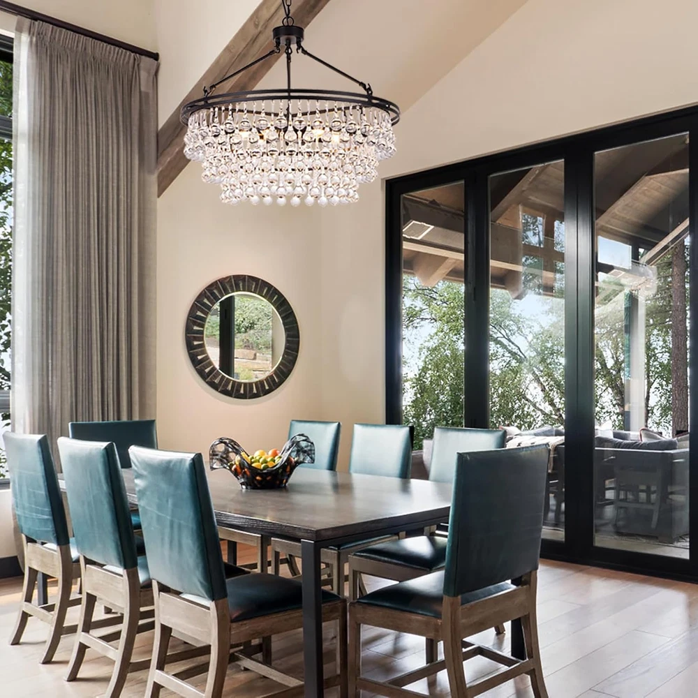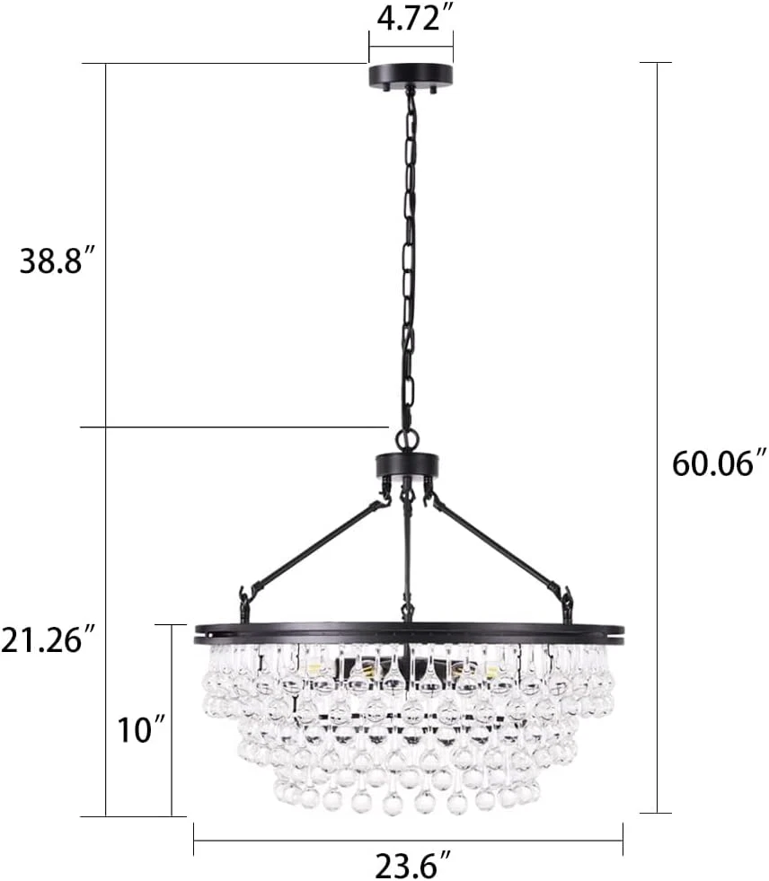 Store New Arrivals Add to Favorite View Feedback Contact Black Crystal Chandelier 24 Inch, Modern Farmhouse Light Fixtures Ceiling Hanging Crystal Pendant Lighting for Dining Room, Kitchen Island, Living Room, Bedroom, 3 Tiers Description Light Source Type LED Style Modern Number of Items 1 Power Source Corded Electric Fixture Type Non Removable Number of Light Sources 6 Control Method App Embellishment Crystal Batteries Included? No Lighting Method Downlight Controller Type Push Button Unit Count 1.0 Count Room Type Entryway, Kitchen, Bedroom, Living Room, Dining Room Assembly Required Yes Product Dimensions 23.6"L x 23.6"W x 60"H Material Metal Collection crystal chandelier Installation Type Hanging, Ceiling Mount Finish Type Matte Black Specific Uses For Product Indoor use only Included Components Mounting Hardware Indoor/Outdoor Usage Indoor Water Resistance Level Not Water Resistant Batteries Required? No Warranty Type Limited Item Weight 26.9 pounds Light fixture form Chandelier Special Features Dimmable Special Feature Dimmable Bulb Base E12 Shade Color black Mounting Type Hanging,Ceiling Mount Color Black Wattage 360 watts Shape Round Voltage 110 Volts Plug Format A- US style Shade Material Crystal Finish types Matte Black Switch Type Push Button Black Chandelier with Crystal Accents: This 6-light tiered chandelier is the perfect pick for bringing brightness and glamour to your entryway or living room. It showcases three tiers of crystal accents, while the metal frame boasts a matte black finish for contrast Crystal Chandelier Dimensions: Overall-23.6 inches Dia x 60 inches H; Chain Length- 35.4inches, length adjustable, suit for flat or slope ceiling Easy Installation: All mounting hardware and a detailed mounting instructional manual are included. It requires assembly and took a little time to put on all the crystals but it is so worth it since the light is stunning Bulbs Requirement: Bulbs are not included. The crystal chandelier lighting requires 6 x E12 base bulbs (Max 60W for each light). Fully dimmable when used with a dimmer bulb and compatible dimmer switch(not included), the adjustable chandelier allows you to control desired brightness for your different needs Wide Application: The black chandelier is suitable for kitchen island, dining room table, living room, hallway, laundry room, bedroom, entryway, stairway, foyer, guest room, etc Product Description TOCHIC BLACK CRYSTAL CHANDELIER Round Crystal Chandelier Light Fixture Why not bring home a pendant that has all the charm of something elegant? This 6-light tiered chandelier is the perfect pick for bringing brightness and glamour to your entryway or living room. It has a matte black finish, and is made up of rows of teardrop crystals. Features Matte black finish crystal chandelier Two types of crystals Adjustable height All parts are well-packaged The fixture needs to be hard-wired Professional installation is recommended Specifications Dimensions: Overall: 23.6 in Dia x 60.1 in H Canopy: 4.72 in Dia x 1 in H Lighting Dimensions Light Fixture Diameter: 23.6" Light Fixture Height: 21.26" Chain Length: 35.4" Maximum Height: 60.1" Minimum Height: 24.7" Number of Lights: 6 (Bulbs Not Included) Bulb Base: E12 Bulb Included: No Maximum Watts (per Bulb): 60W Bulb Type: LED, Incandescent, CFL, Halogen, and Edison Notes: Please check the dimension of the lights before you order. Please carefully check the installation instructions. Ensure the chandelier is disconnected from the mains power before installation. Two Different Crystals The crystal's design is 2 different patterns- longer teardrops and shorter teardrops. (You do have to put every crystal on individually but the reward it sheer beauty) The light shimmers through the crystals and looks beautiful. Sparkle Crystal Ceiling Light The dramatic sparkle - and often dramatic form - of crystal ceiling light fixtures make a great first impression in entryways, and hallways. Hundreds of clear glass drop crystals surround this beautiful chandelier. With 6 lights and a beautiful round frame, this chandelier is sure to light up your home. Space Application crystal chandeliers for kitchen crystal chandeliers for dining room crystal chandeliers for bedroom ABOUT US We offer the best prices around on high quality products. Our E-store includes media such as books, movies, music and games while offering electronics, toys, sporting apparel, clothing, tools, general home, garden items and more. SHIPPING We are always working hard to ensure your package arrives as soon as possible. Please understand that some factors like weather, high postal traffic, and the performance of shipping companies are outside of our control. We offer free shipping to the lower 48 states and ship within 2 business days of payment, usually sooner. We do not accept P.O. Boxes. Please provide a physical address. For shipping outside of the continental USA, we only use eBay's Global Shipping Program.The item is shipped to KY and then sent to the rest of the world. International customers are responsible for all duties and taxes. Continue to check out in order to calculate costs for shipping the item to your country. Messages regarding eBay's Global Shipping Program MUST be directed at eBay EXCLUSIVELY. RETURNS We offer a 30-Day Return Policy on items which you are not completely satisfied with. You have the option for a full-refund or an exchange of the item. No returns are available on items shipped outside of the USA. PAYMENT We accept PayPal. CONTACT US This page content is yet to come Please ad us to your favorite seller and visit again later Thank You CUSTOMER SATISFACTION We try our very best to make sure every customer is completely satisfied. If there's a problem, message us! We're happy to help. WE ACCEPT Copyright © 2021 AutoDS. | All Rights Reserved