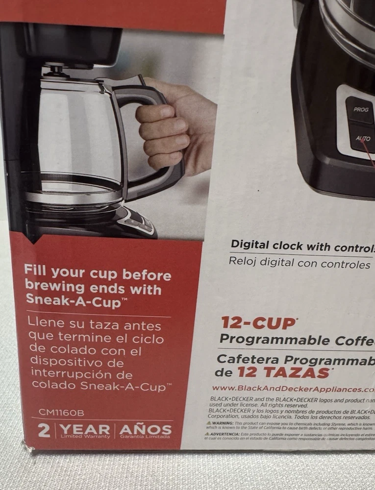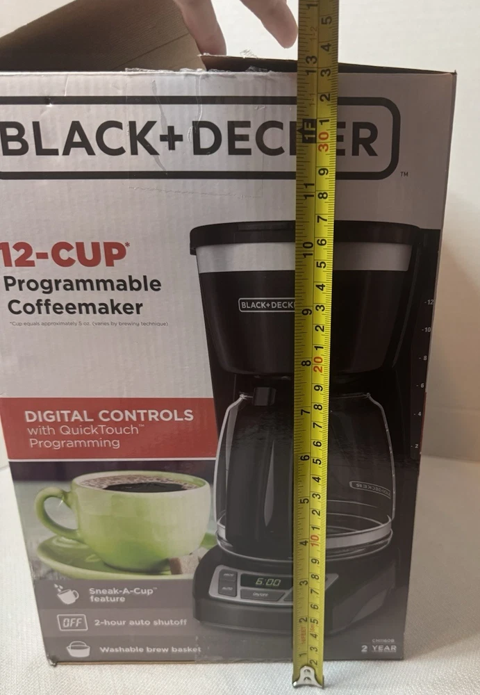 The Black + Decker 12 Cup Programmable Coffeemaker with Digital Controls CM1160B is a convenient and efficient coffee maker that brews delicious coffee using ground coffee. This sleek black machine features a digital control panel, programmable settings, and an auto shut-off function for added convenience. With a generous capacity of 12 cups, this coffeemaker is perfect for large families or busy households. The cord storage and included user manual make it easy to use and maintain, while the wall plug-in power source ensures consistent performance. Upgrade your morning routine with this reliable Black + Decker coffee maker.