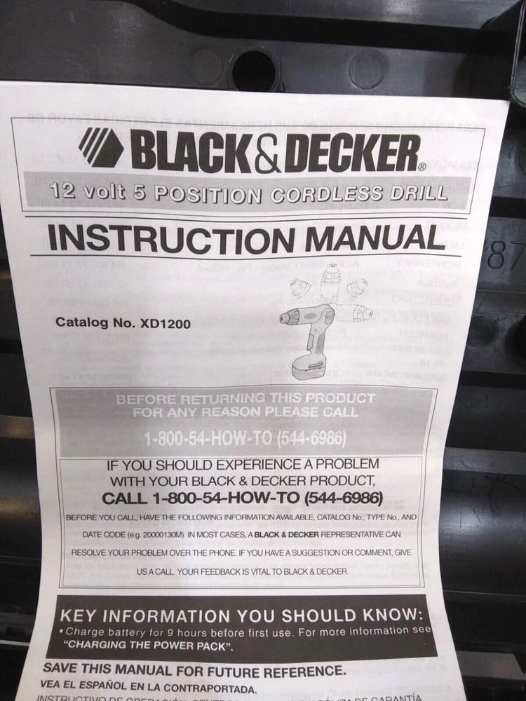 Black And Decker 12V Volt Cordless Screw Driver XD1200 Battery Not Working Please Read The Return Policy,Descriptions And 1 Day Handling Times Carefully Before Purchasing *** ATTENTION !!! My Best Offer Is Set At $3.00 To $10.00 Less Than The Fixed Price *** *** All Photo's Are Of The ACTUAL Item(S) That You Will Receive Guaranteed *** *** Ships From The U.S *** (1 Or Same Day Handling Time ) **PLEASE READ!! *** Saturday-Cut Off Handling Time Is 7 Pm Eastern Standard Time(Will Ship On Monday) Sunday - Cut Off Handling Time Is 7 PM Eastern Standard Time(Will Ship Next Day On Monday) Mon.-Fri. - Cut Off Handling Time Is 1 PM Eastern Standard Time(If Ordered After 1 PM Will Ship Next Day) *** If Order On A Major Holiday We Will Ship The Day When The Post Office Reopens *** *** Ships USPS Priority Mail Package Delivery (Bubble/Paper 14x13x5) *** (U.S) *** Ships Ebay International Standard Delivery (Bubble/Paper 14x13x5) *** (International) Item Description : Black & Decker 12 Volt 5 Position Cordless Drill XD1200 Excellent Condition Set Includes : Drill Manual Battery(Not Working) Charger Case **Be Sure To Inspect Your Item Immediately Upon Arrival Please Leave Positive Feedback If You Are Happy And Satisfied With your Purchase If By Any Chance That The Item Is Not As Described Please Contact Us So That We Can Fix It...Please Report The ERROR To Us. Condition- *** Pre-Owned *** Excellent Condition Has Manual,Case Charger And Battery(Not Working) *Location : Smoke FREE,Clean Warehouse *Payment : ALL TRANSACTIONS MUST BE HANDLED THROUGH EBAY ONLY!! *Shipping : We Ship All Items 1 or Same Business Day Of Payments Clearing (Including Weekends And Holidays) We Ship Worldwide * Return Policy:Please Read Carefully !! IF WE OFFER FREE RETURNS !!! We accept a return for any reason during 30 days after receiving the item Undamaged,in resalable condition and original package for a refund less ALL shipping costs plus restocking fee 10%. Items That are Broken,Taken Apart,Scratched from a smoking environment will not get a refund. Please be gentle with the item. We Provide you with Descriptions; If you need more information about the item ..Please don't hesitate to ASK ! We will be more than happy to help you to make the right purchase. HAPPY AND SATISFIED CUSTOMERS ARE OUR # 1 PRIORITY !!! ***** Contact Us ****** Please Feel Free To Contact Us With Any Questions About The Item Thank You For Stopping By And Have A Great Day!!